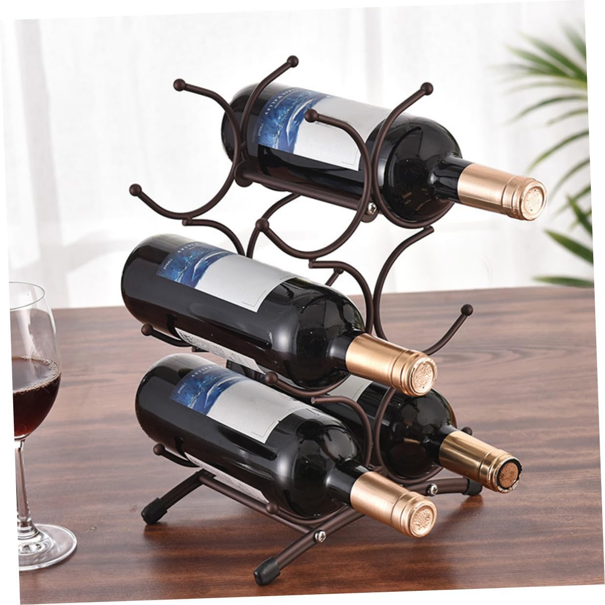 Package Include 1 x Wine Rack Features -Product Info:Red wine rack - Size: 35.50X23.00X16.00cm/13.95X9.04X6.29in - Material:Iron - It can be used to display wine, red wine bottles and other kinds of wine, and has a wide range of uses bar wine holder. - Safe and convenient to use, not easy to break or deform, reusable and can be applied for longtime iron beverage storage. - Suitable for home, bars, hotels and restaurants. Storing wine bottle horizontally can keep corks moist to make wine last longer liquor bottle display shelf. - The stylish and modern design of this wine rack also makes it a beautiful decoration for your home wine displaying stand. -Although its design is simple, this wine holder is so practical when you use it. You can use it without worry iron rack. - ColorDark BrownGoods Informationstorage display rack Are you looking for a convenient but reasonably wine stand? Are you looking for a sturdy, trustworthy tool that now? If yeas, then you must take at our iron wine bottle holder, which can meet your needs