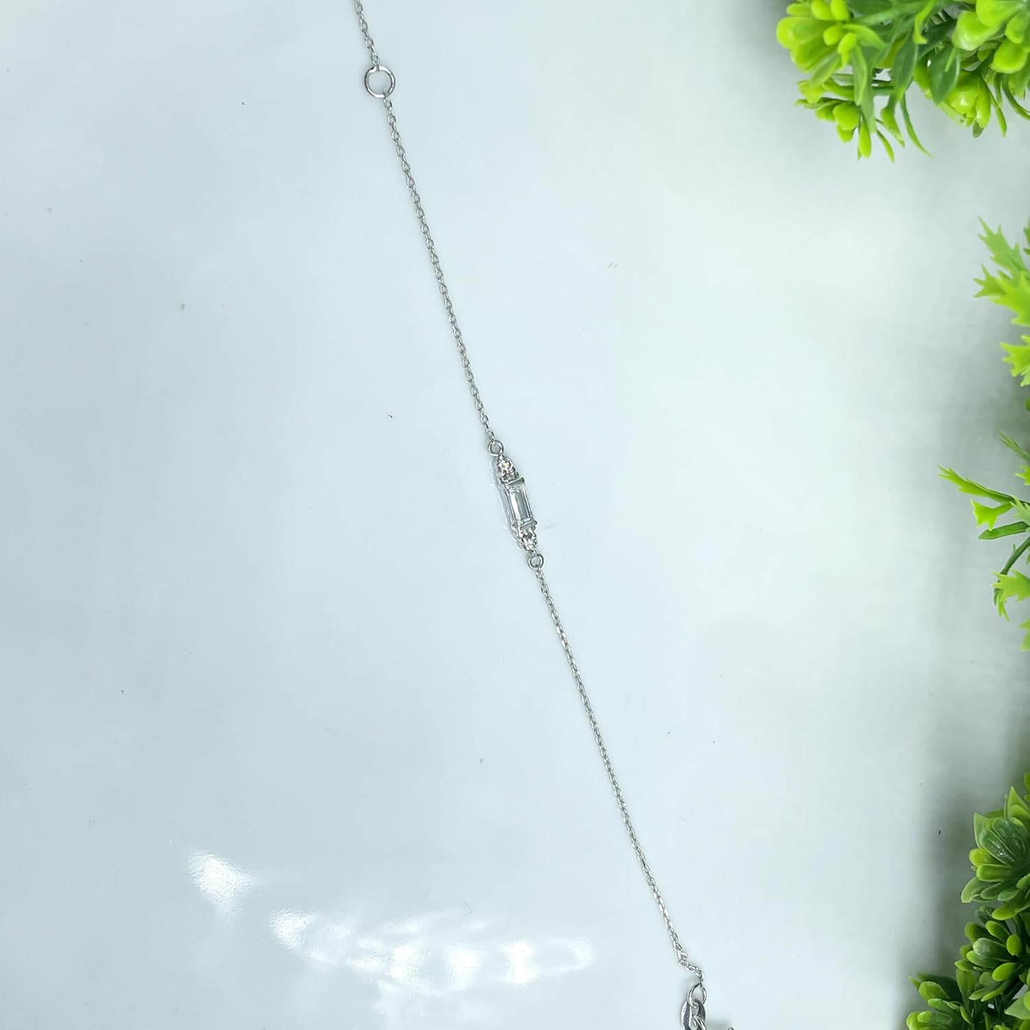 This Chain Bracelet Crafted in 925 Sterling Silver, available in 14K White, Yellow and Rose Gold Plating. Baguette Cut White Diamond set in Prong setting.