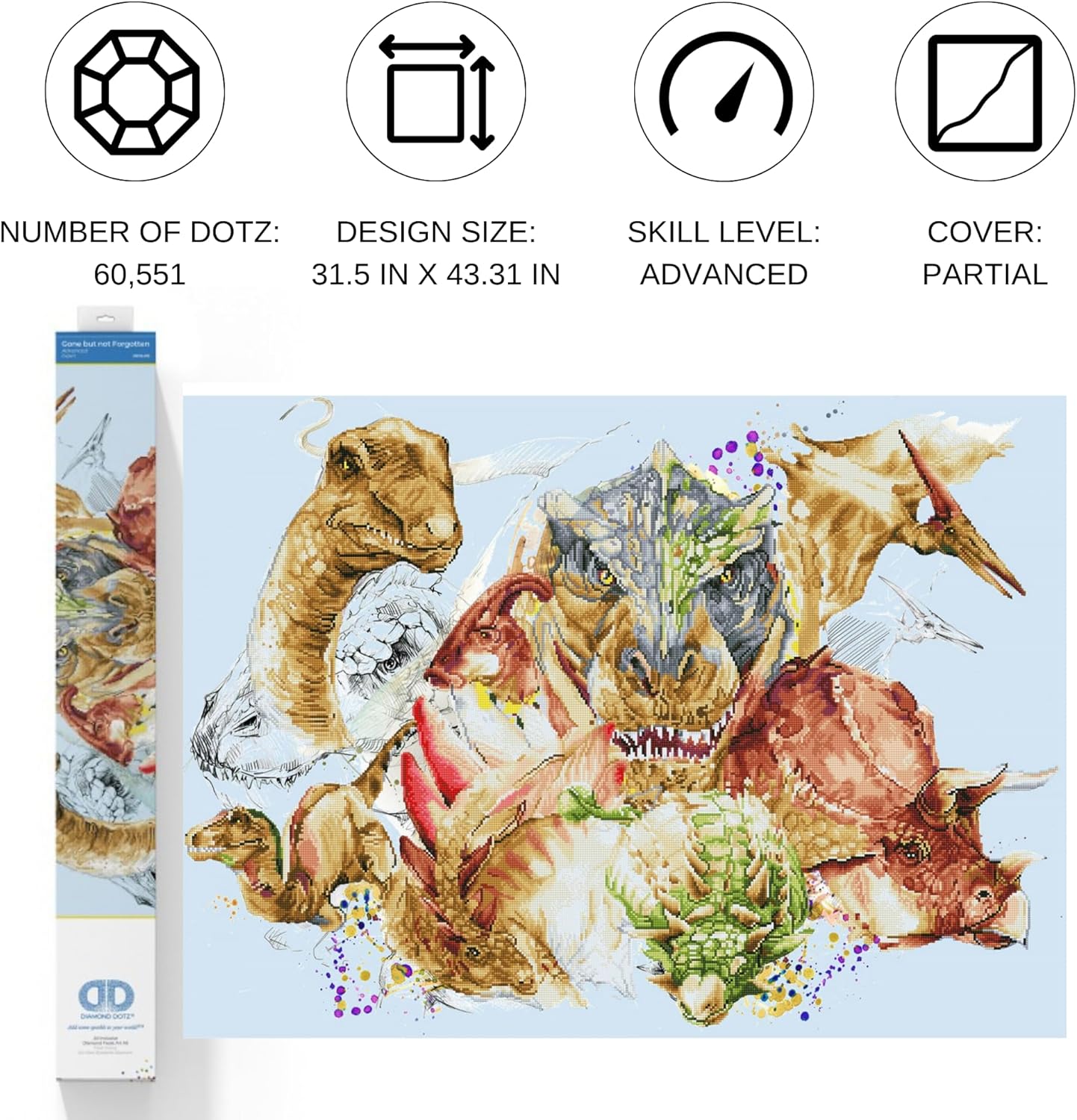Quick, easy and fun to do Just use the Diamond Dotz Stylus to pick up a dot and place it onto the matching square on the sticky print. This package contains one 46.5x34.7 inch piece of high quality colors printed fabric, Diamond Dotz, one stylus, one craft tray, one wax caddy and multi-lingual instructions. Design: Gone But Not Forgotten. Design Size: 43.3x31.5 inches. Imported.