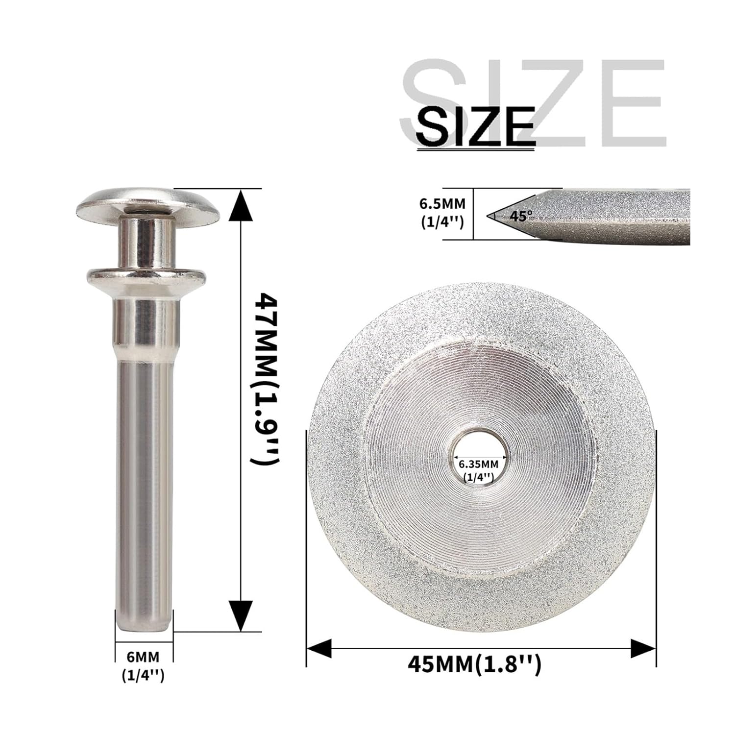 Buffing WheelsSpecification:Material: Diamond sand coatedColor:SilverDiameter:45mmInner hole:6.35mmModel Number : hjs00000082-6BCertification : NoneType : Abrasive DiscDIY Supplies : Metalworking