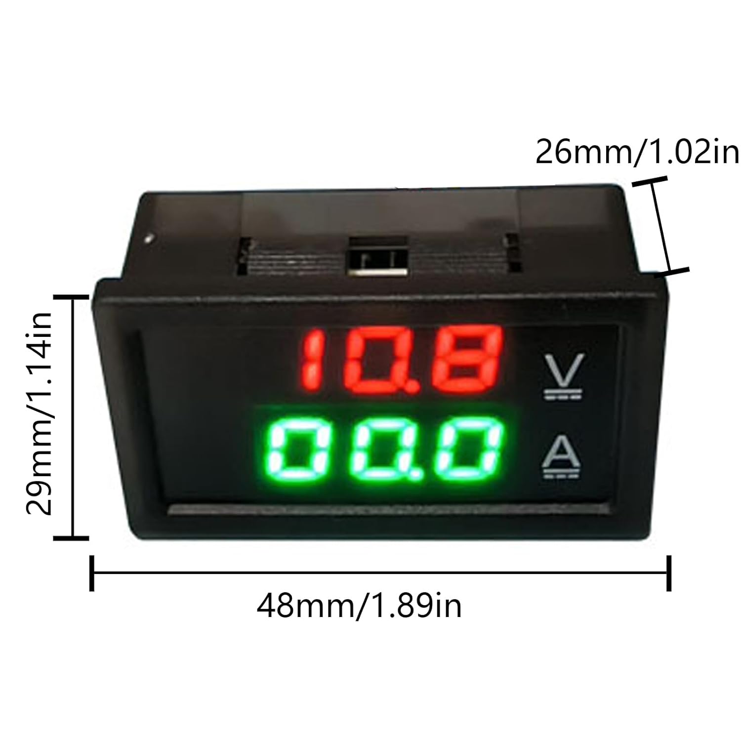 Digital Voltmeter Ammeter DC300V 50-400A Voltage Current Meter Tester 3Bit Double LED Display PanelFeatures:This meter features user friendly design and functionality, ensuring precise readings for both positive and current.Positive and bidirectional current measurement.Integrated voltage and current, antireverse connect protections, antireverse connection without burning.This power energy meter can measure and display voltage and current at the same time.Small size, simple application, made from highs materials, wear and practical.Specifications:ABS Current range: 50A/100/200A/400ACurrent resolution: 0.1Amp/0.1Amp/0.2A/0.2APowersupply voltage range: DC5-100VVoltage measurement input range: DC300VVoltage resolution: 0.1VSize:Approx.48mm/1.89''x29mm/1.14''x26mm/1.02''Package Includes:1x Ammeter Voltmeter1x Diverter 1x Connect Cable1x Power CordNote:Please allow 1mm errors due to manual measurement. Due to the differences between different monitors, the picture may not reflect the actual color.