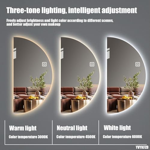 Enhance your bathroom experience with our elegant wall-mounted mirror, designed to blend seamlessly with any decor. Crafted from a premium 5mm HD silver mirror and featuring a 12V waterproof light strip, this mirror not only offers clarity but also adds a touch of sophistication to your space. Available in a range of sizes from 30x60cm to 60x120cm, it fits perfectly in various settings, whether you're getting ready for a night out or simply enjoying a moment of self-care. This stylish semicircle mirror is perfect for your vanity area, providing ample lighting to help you achieve that flawless look. The sleek design and high-definition reflection ensure you always look your best. It's an ideal choice for those looking to elevate their bathroom aesthetics while enjoying practical functionality. Installation is straightforward with a drilled mount, ensuring stability and ease of use. Please note that while the built-in light enhances visibility, it is not intended to replace your primary light source. With a commitment to quality, we allow for minor measurement discrepancies of 1-3cm due to manual processing. We prioritize your satisfaction and are here to assist you. Our dedicated customer service team responds to inquiries within 24 hours, ensuring any concerns are resolved swiftly. Transform your bathroom into a stylish retreat with our high-quality wall mirror, where elegance meets everyday practicality.
