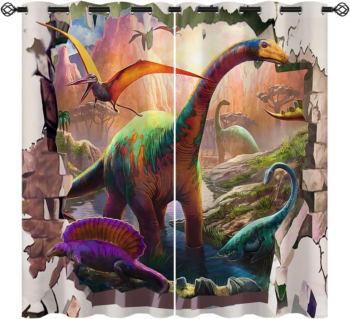 These print curtains are perfect for Living room, bedroom, kids room, kitchen, yard, patio, parlor, sliding door with Dinosaur,Jurassic Animals Ancient Jungle World pattern.- Unique design:· Save energy costs by insulating against heat and cold.· Reduce noises from busy streets and high-traffic areas.· Protect furniture from sun damage and fading.· Provides complete privacy when needed· Perfect for any bedroom, office kids room and living room.- Package Included:· Blackout window curtains 2 Pcs set ( two panels).- Material:· Our Blackout Curtain Liners are crafted from a durable soft and thick triple weaved blackout fabric which can block out sunlight and UV rays. The darker color of the fabric, the more light it can block.- Easy Care Instructions:· Machine washable in cold water· Do not bleach.· tumble dry on low· low temperature ironing- Notes:· For your curtains to be more perfect, please choose a size 5-10 Inch larger than the actual window width.· here may be slight differences in colors on different displays. If you have any questions about the product, please feel free to contact us.