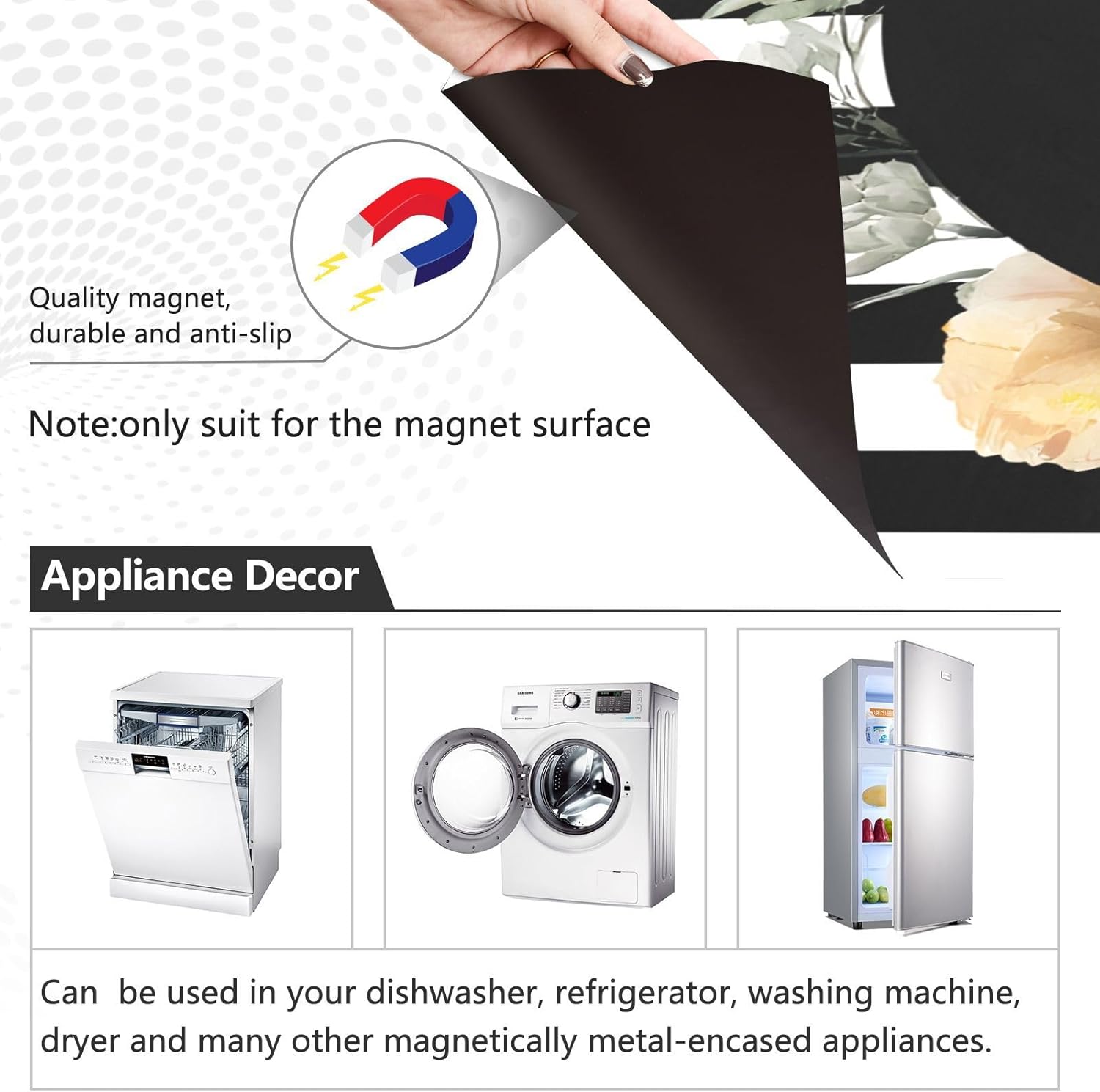 Decorate your kitchen life!This magnetic dishwasher cover is a work of art, decorating your kitchen art, with a sense of fashion and art, highlighting your quality life!Size in 23 x 26 inches. This size fits most dishwashers.Cut it to your own size to fits your need.FeatureWaterproof, heat resistant, scratch and tear resistant. Magnetic stickers hide scratches, dents or other unsightly marks.Magnetic MaterialMagnetic sticker will not fall from magnetic dishwasher and disassemble easily.Protect the dishwasher from scratches, it can also decorate your kitchen home.Please NoteMagnetic dishwasher cover is made of PVC+PET, only suit for the magnet surface.Install: Trim the proofreading position, the magnetic force on the back will stick to it.