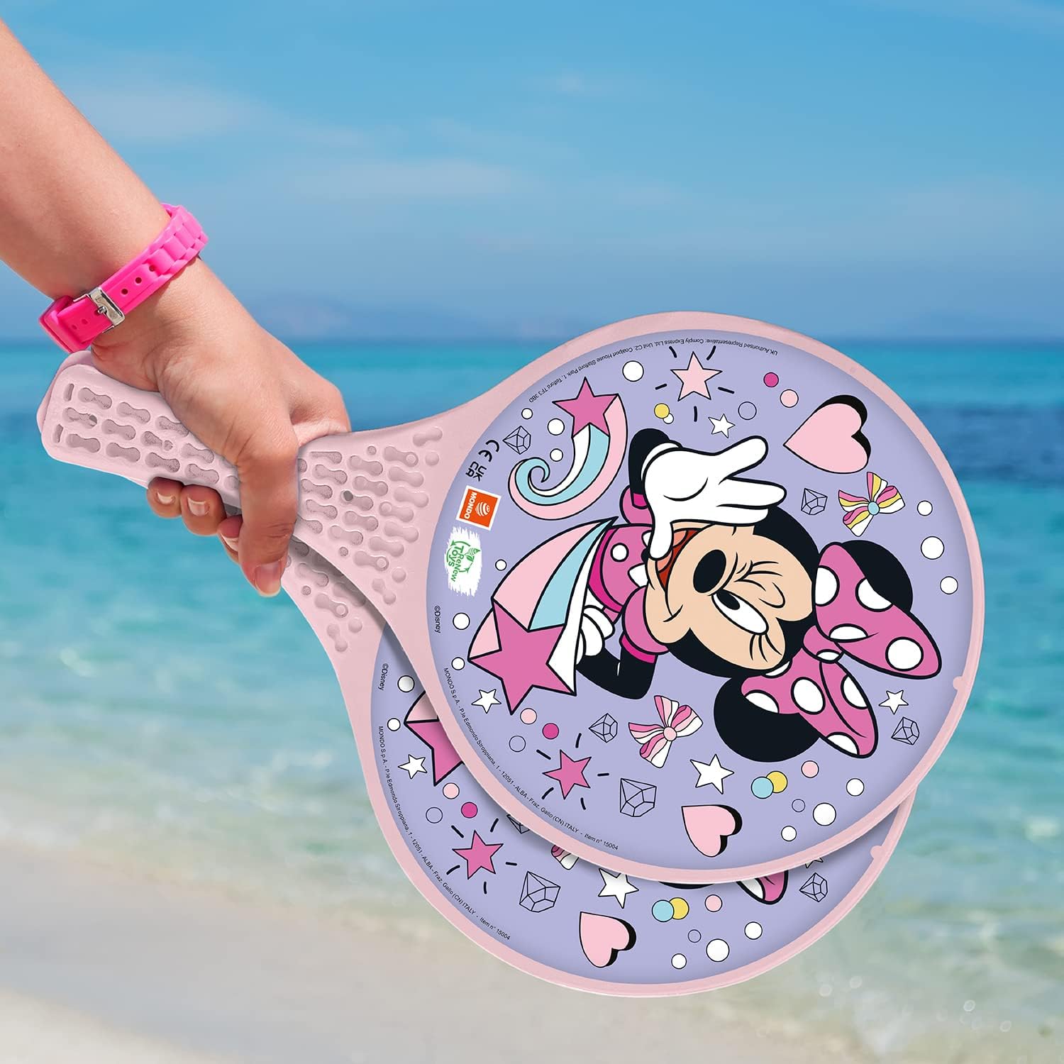 Product Description This Great Minnie Mouse Paddle Bat Set is the perfect toy for fun at the beach. Comes complete with 2 paddle bats and a small soft ball. The Design covers the face of the bats and comes in bright, fun colours. Set Contains: 2 x Paddle Bats; 1 x Ball