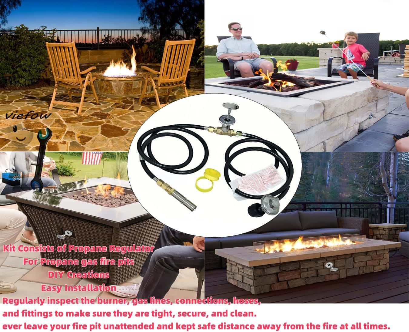 In your own back yard with this Fire Pits . Enjoy the dancing warmth of a dramatic and luminous campfire flame while gathering around your fire pit with family and friends.The kit includes 5FT low pressure QCC inlet connection propane regulator and 5FT low pressure extension hose with key control valve, which can meet your fire pits installation needs. The control key valve can be opened and closed to control the gas entering and the fire can be adjusted by controlling the gas entering. Improving propane burn efficency, reduces sooting normally associated with propane.