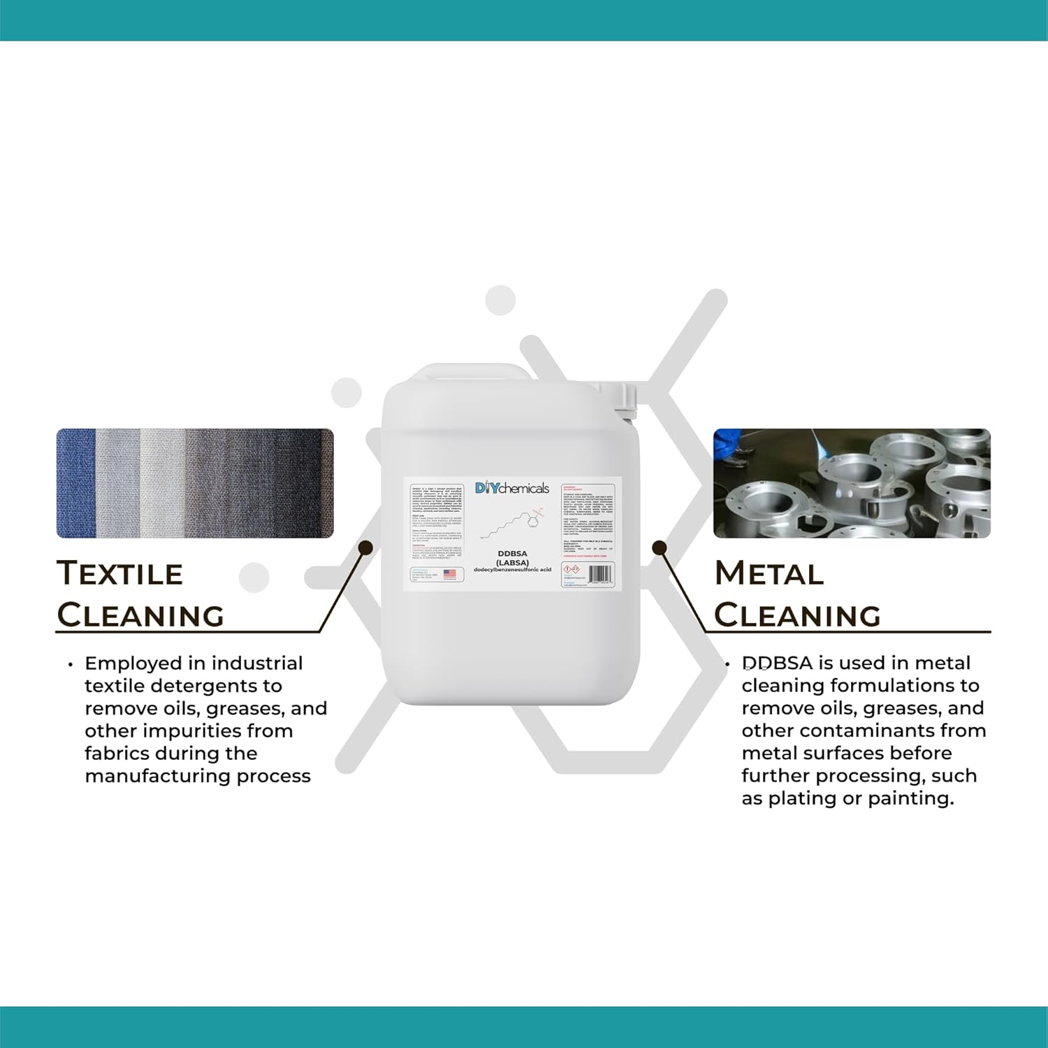 Why Choose DIYChemicals DDBSA/LABSA?Looking for a powerful high foaming acid anionic? Tired of using cheap Dodecylbenzenesulfonicacid solutions that just doesnโt work? Then DIYChemicals has the perfect product for you!This industrial chemical and cleaning agent is tested or inspected numerous times throughout the manufacturing process to maintain optimal ability for all industries.Choose between numerous sizes for all of your industrial, laboratory, educational or household needs!- MULTIPURPOSE USESDIYChemicals Linear Alkyl Benzene Sulfonate can be used in a plethora of ways, including: Surface Cleaner, Brewing System Cleaner, Keg Cleaner, Laundry Detergent, & MUCH more!- SUITABLE FOR ALL INDUSTRIESWhether you are in the textile, cosmetic, hydroponics, medical, healthcare, industrial or agriculture industry, our Dodecyl Benzene Sulfonic Acid solution is a must have. Go with the best supplier there isโฆ DIYChemicals!- PRECAUTIONSAlways handle this with DDBSA/LABSA with care. It is corrosive to tissue and toxic if consumed. Always wear gloves when handling, keep away from children & direct sunlight, store in a cool dark place, avoid inhaling the fumes and avoid direct contact with the skin, eyes and face.- MANUFACTURED & BOTTLED IN USARest easy knowing that this Linear Alkyl Benzene Sulfonate is manufactured, bottled and labeled in the United States of America. We take pride in creating American jobs and always focusing on creating an optimal end product for our customers.