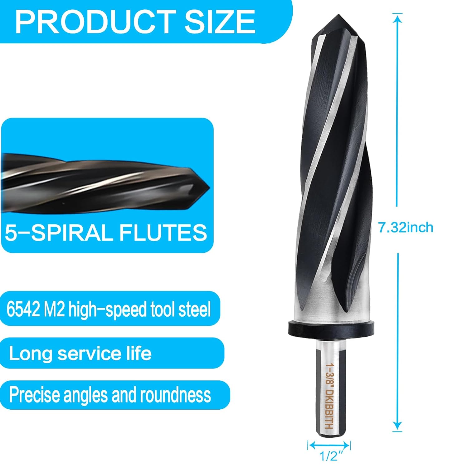 1-3/8" Reamer Drill Bit is an indispensable tool for professionals and DIY enthusiasts seeking precision, durability, and versatility in their projects.Precision and Durability:Engineered from M2 HSS with five long right-hand spiral flutes with meticulously ground sharp edges ensure smooth cutting and efficient debris removal, suitable for the most demanding tasks.Optimal Performance:The reamer bit features a 1/2" round shank with three flat sides to ensure a secure grip in the chuck, minimizing the risk of slippage during operation. The tapered point allows for easy entry into imperfect holes, providing stable and consistent reaming.The integrated safe stop function prevents over-drilling, enhancing both safety and precision.Versatility Across Multiple Applications:Capable of handling a wide array of materials, including steel, alloy aluminum, brass, copper, iron, nickel, plastic, and PVC pipes, this reamer drill bit is a must-have for metalworking, bridge construction, steel erection, automotive truck trailer maintenance and woodworking.Usage Guidelines:1. Wear appropriate safety gear.2. Firmly mount the reamer drill bit in the chuck of your electric or pneumatic drill.3. Position the bit accurately in the predrilled hole.Gradually increase speed while maintaining steady pressure, and apply cutting oil to reduce friction and enhance cutting efficiency.4. As you approach the desired hole size, reduce speed to ensure a smooth and precise finish.Maintenance Tips:- Clean the reamer bit after each use to remove debris and cutting oil residues.- Store the bit in a dry place to prevent rust and corrosion.
