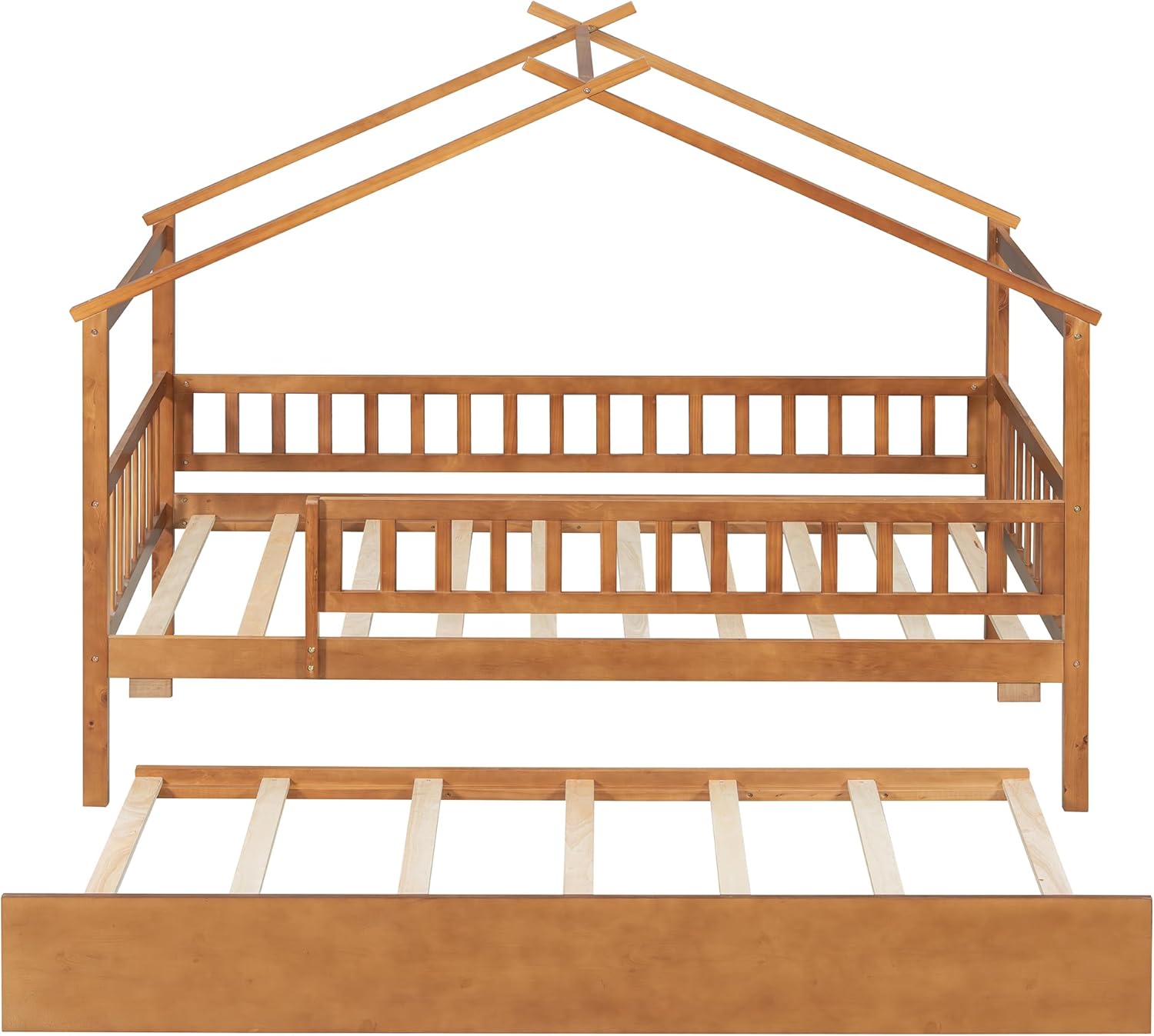🖤Twin Size Wooden House Bed with Twin Size Trundle🖤🖤Weight & Dimensions🖤🖤Weight & Dimensions: 81.5''L x 41.3'' W x 65.4'' H🖤Number of Package: 1🖤Overall Product Weight: 89.8 LBS🖤Weight Capacity🖤Bed:300 LBS Trundle:300LBS🖤Recommended age: 6+🖤Recommended Mattress Thickness: 6-8"🖤Specifications🖤🖤Product Type: Daybed🖤Size: Twin🖤Color: White/Gray/Natural/Walnut🖤Material: Pinewood+Plywood🖤Number of Slats🖤Bed:10 Trundle:7🖤Country of Origin: Vietnam🖤Notes🖤Manual measurement has been used,there may be some reasonable error. All the pictures are taken by actual samples, slight chromatic aberration may occur due to lighting or display.