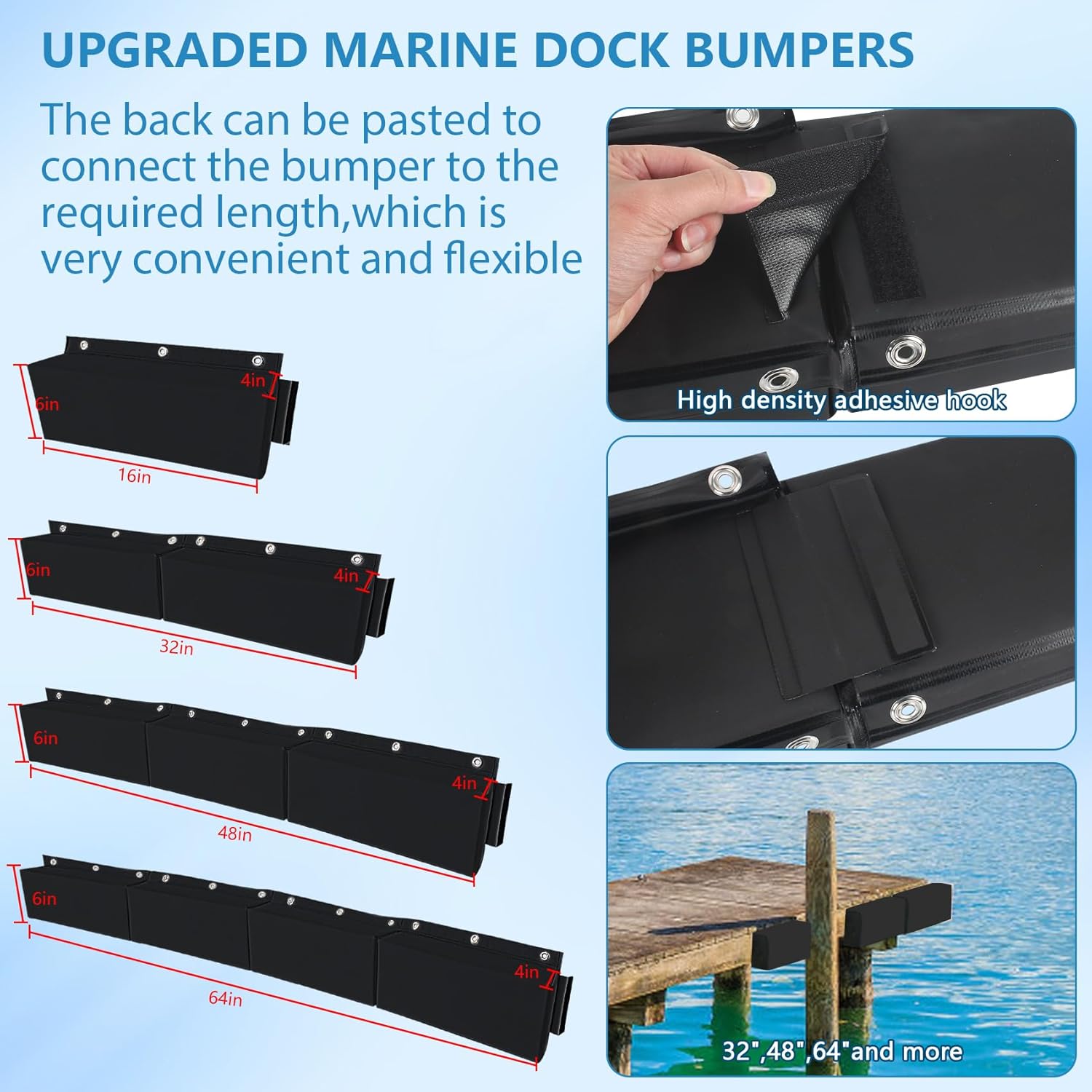 Product DescriptionProduct Name:Dock Bumpers,Boat Bumper,Dock Bumper GuardsProduct Color:White/Blue/Black/GrayExternal Material:High Quality VinylInternal Material:High-Density Closed Cell FoamPackage List:Boat Dock BumperStainless Steel Screws