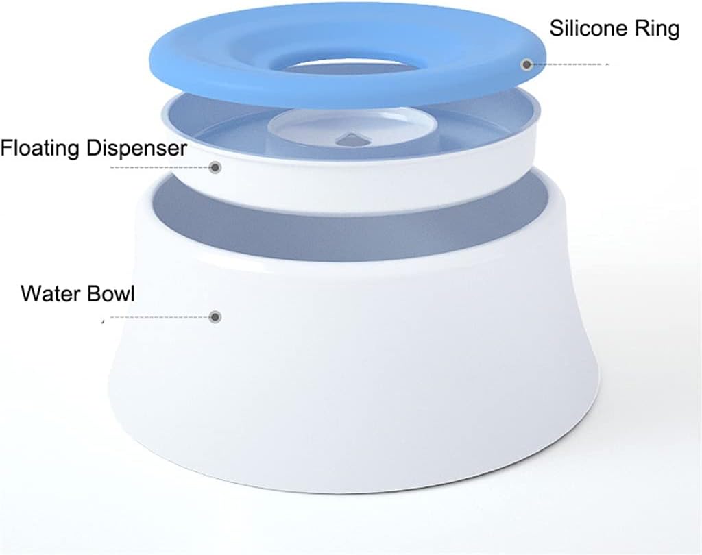 The disassembly design can control the water, and the silicone and PP removable design is used to facilitate the cleaning of the floating plate.You can open the floating plate and inject water to increase the weight of the floating plate to control the water output.Say goodbye to wet mouth hair and splash water. The floating plate can prevent large areas of water from wetting the pet's mouth hair, causing the pet's mouth hair to change color. The pet's tongue leaves the floating plate and immediately rises to prevent the water in the bowl from splashing on the ground.Isolate the dust and drink the water. The floating plate only shows the water outlet in the middle, so you can drink as much as you want. It can prevent dust, dirt and pet hair from entering the bowl and affecting the water quality.The safe material has a larger capacity. The buoyancy water bowl is made of green and safe material, nontoxic, tasteless and bite resistant. The large capacity of 1200ml is enough for a large dog to drink a day