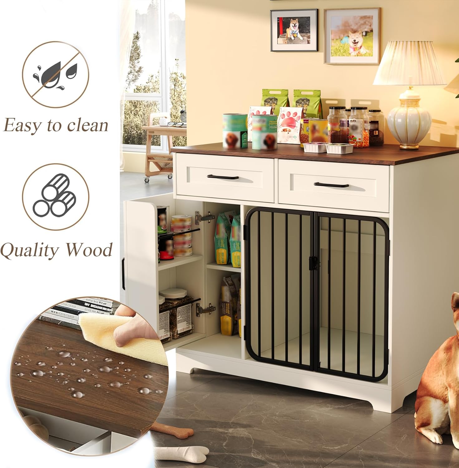 描述 Dog Crate Furniture, Indoor Dog Kennel with 2/3 Storage Drawers and Storage Cabinet, Wooden Dog Cage with Side Door and Sliding Barn Door for Small Medium Dogs Specification: Name: Dog Crate Furniture Material: Iron, MDF Color: White Size: 95*60*88cm/37.4*23.6*34.6in 140*60*88cm/55.1*23.6*34.6in Package include: 1pc * Dog Crate Furniture Notes: 1. This product only includes desktop bookshelves, no other items, please pay attention when purchasing. 2. Due to different display resolutions, the display color may be biased, please understand. Dog Crate Furniture, Indoor Dog Kennel with 2/3 Storage Drawers and Storage Cabinet, Wooden Dog Cage with Side Door and Sliding Barn Door for Small Medium Dogs