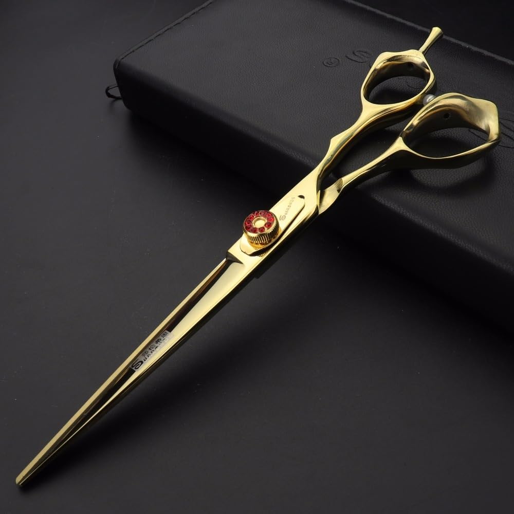 Dog Grooming Scissors Shears, 4PCS Gold 7-inch Japan Pet grooming scissors Set Hair trimming tool Thinning Scissors Curved scissors