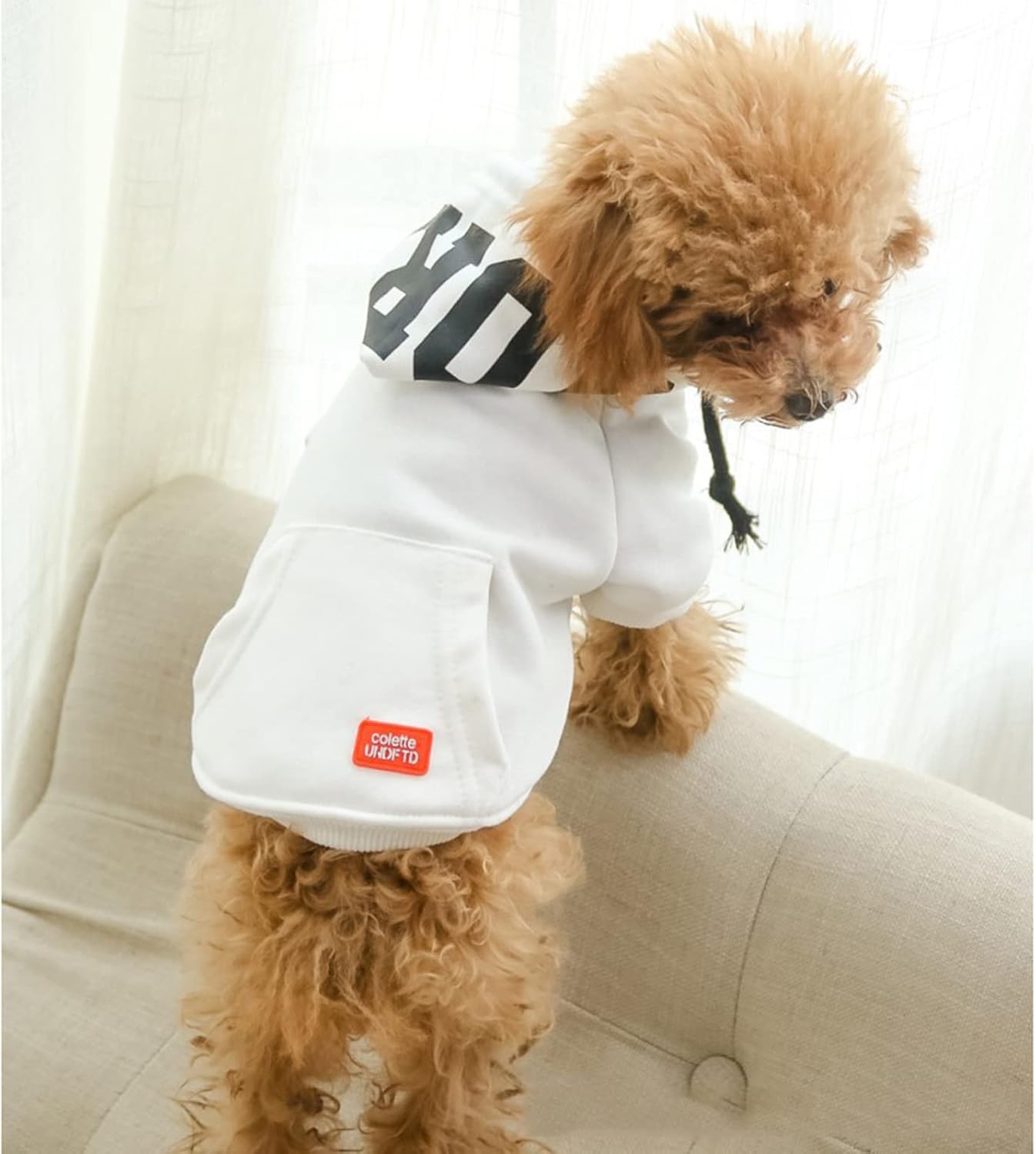 FEATURES1. The fashion color design could makes your dog easy to stand out and attractive.2. Elastic fabric, not easy to tear up.3. Soft, comfortable lining, keep warm for your dogs.4. Snap design, easy to put on & take off.WASHABLEMachine washeddried at low temperature or air-driedMEASUREMENT1. When the dog stands forward2. Use a soft ruler to measure a circle around the back of the dog's front leg, then you get the Chest Girth of your dog.3. In order to make your dog wear more comfortable, we recommend that you add 3-5cm/1.4-2.0" to the dog’s Chest Girth then choose sizes according to our Size Chart.PARAMETER:Product color: Yellow, Black, WhiteProduct material: CottonDog Range: Small medium dogs like Chihuahua, Bichon Frise,Teddy, Schnauzer Corgi etc.Size: 2XS, XS, S, M, L, XL, 2XL, 3XL, 4XLPACKAGEDog hoodie * 1⚠️NOTICEManual measurements, please allow 1-3cm/0.4-1.2" error.