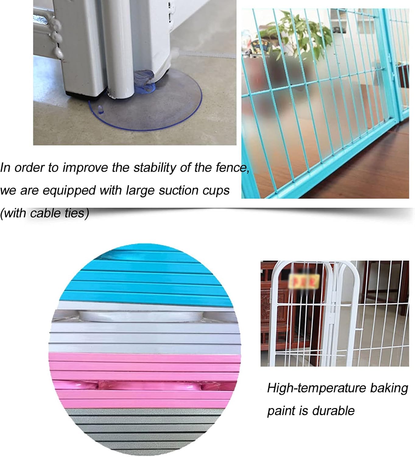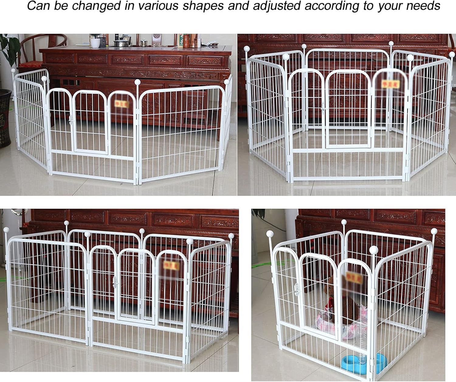 Welcome to my store, I wish you a happy shopping. Our shop has a variety of styles , you can go to my store view Specification: Product name: large indoor dog cage Color: black, white, pink,blue Size; 60*60*60cm, 80*80*80cm Material: metal (powder-coated) Easy setup and secure footing All corners are rounded, no risk of injury Big playing and cuddling area Can be used for other small animals as well, like rabbits Packing: 4 pieces of fence BUY NOW by clicking the "Add to Cart Button", you won't be disappointed!