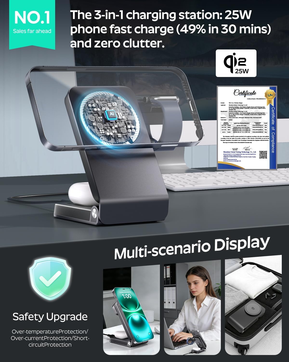 | Compatible Phone Models | Qi2.2 25W for iPhone 17, iPhone 17 Pro, iPhone 17 Pro Max, iPhone 16 Plus, iPhone 16 Pro Max(with iOS 26 or Later); Qi2.2 20W for iPhone 17 Air, iPhone 16, iPhone 16 Pro; Qi2 15W for iPhone 15, iPhone 15 Plus, iPhone 15 Pro, iPhone 15 Pro Max, iPhone 14, iPhone 14 Plus, iPhone 14 Pro, iPhone 14 Pro Max, iPhone 13, iPhone 13 Pro, iPhone 13 Pro Max, iPhone 13 mini, iPhone 12, iPhone 12 Pro, iPhone 12 Pro Max |