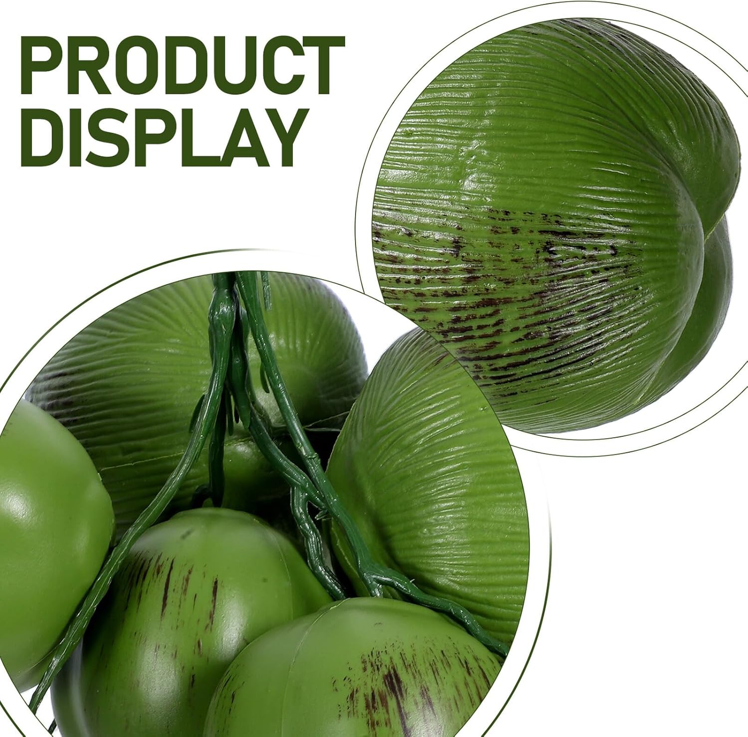 Package List 1 x simulated coconut fruit Characteristics -Easy to handle: this artificial coconut is easy to transport and arrange, making setup a breeze fake fruit -Authentic design: the artificial coconuts feature a highly realistic design, making it nice for creating an authentic tropical party atmosphere tropical decor -Product Info:Simulated coconut fruit - : made with sturdy plastic and iron wire, this artificial coconut is designed to withstand repeated use without losing their charm tropical garland party decoration -Size:38.00X35.00X33.00cm/14.93X13.76X12.97in -Multipurpose use: ideal for various occasions such as hawaiian parties, beach decor, and family gatherings, enhancing the tropical theme effortlessly hawaiian party supplies -Adds tropical flair: nice for adding a touch of tropical greenery to any space, creating a serene and inviting environment for all occasions luau decorations -Color:Green -Material:Plastic, ironGoods Informationluau decorations Our artificial coconut decoration is designed to mimic the appearance of real coconuts, providing a realistic and vibrant look. party decorations This decoration is ideal for creating stunning centerpieces, hanging displays, or adding to photo booth props, making your party decor stand out with a tropical flair
