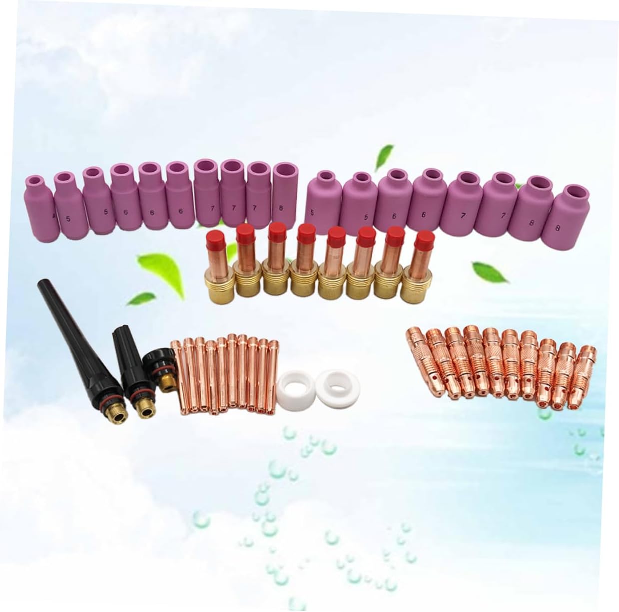 Package List 51 x Welding Kit Features - Warm Tip: Dear buyer, Due to lighting effect,monitor's brightness,manual measurement and etc, there could be some slight differences in the color and size between the photo and the actual item Tig Welding Torch Set. - Color: As shown. - Size: Approx. 15x8x9cm - Material: Metal. - Region and easy to use, can be used for WP-17 WP-18 WP-26 TIG Welding Torch Tig Welding Torch Kit. - Have the lowest burn-loss rate Tig Welding Kit. Tig Welding Torch Parts - , welding do not have to make changes program welding. - for durable and long-lasting use.Goods InformationTig Welding Torch Kit This kit has the lowest burn-loss rate.Tig Welding Torch Parts The precise design will ensure its practicability in the work of highly performance.Tig Welding Kit It's easy to use and install with