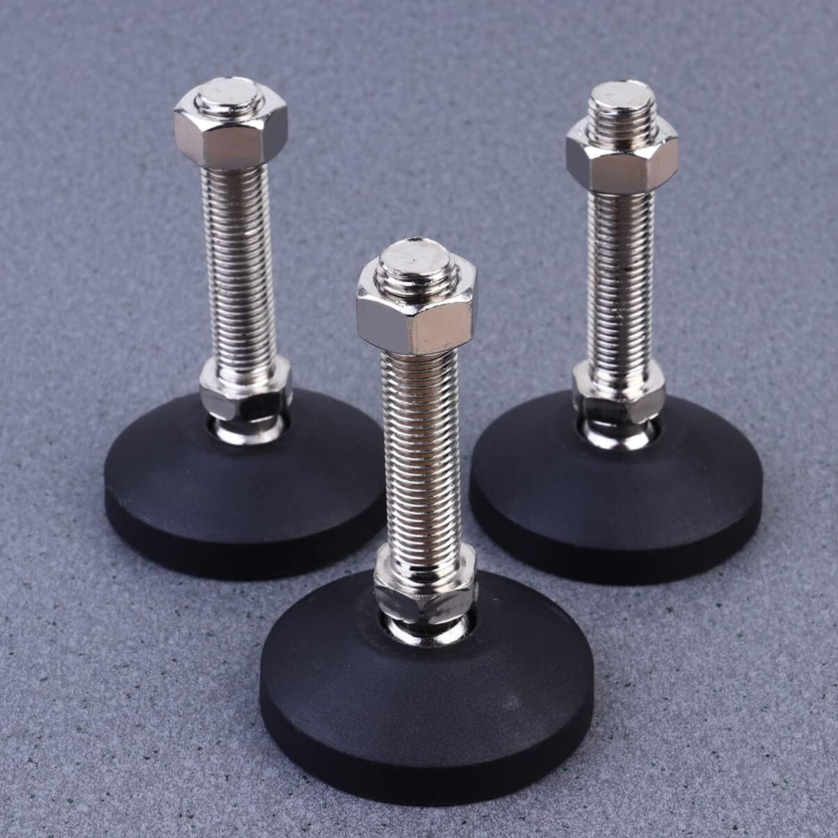 FeatureStrong Material: Hard Nylon Glide allow it to bear heavier things. don't need to worry about itBeautiful and : You no longer need to put a cardboard shell on the floor because it will protect your floor from scratches and no noise to disturb your restBalance Furniture: There are screws welded at the bottom of the leveling feet, which can bear heavy furniture, and can easily level uneven furnitureWide Application: The leveling feet adjustable can be used on any furniture leg to help it level the same height, such as tables, chairs, kitchen cabinets, and sofasGood for Floors: The stainless steel leveling feet is kind for all types of floors including,wood,hardwood,floors,tile,laminate,carpet!Specification:- Material: Nylon- Size: 7.5x7.5x11cmPackage Including4 x Adjustable Furniture Leveling Feet
