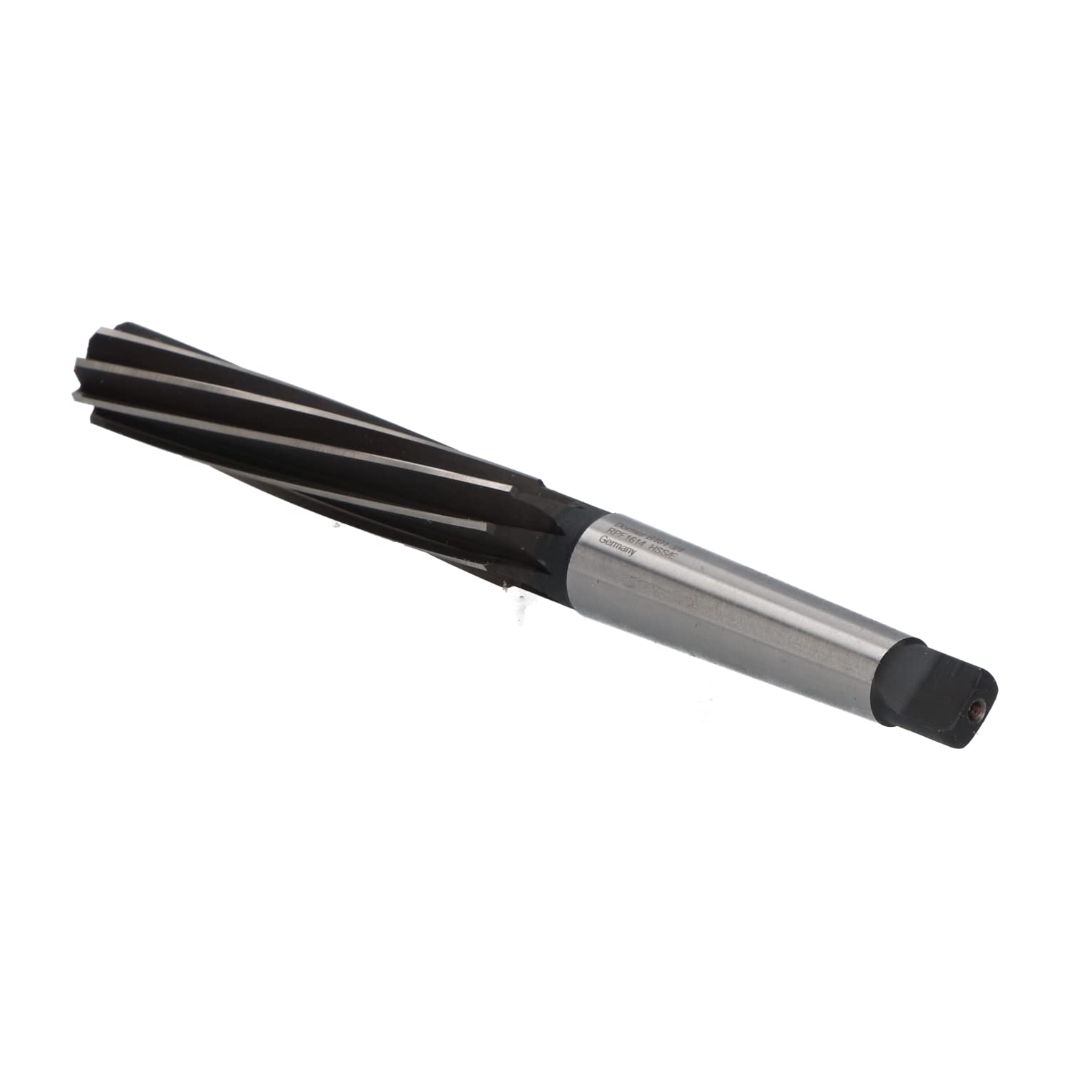 Machine Reamer has morse taper shank and comes with bright/ST coating. Left hand slow spiral, right hand. Steam oxide in flutes reduces wear chip welding harder ferrous materials.
