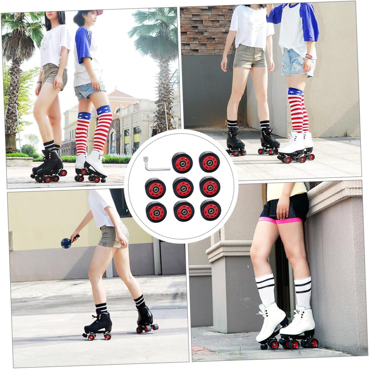 Package List 8 x Skating Wheels 1 x Wrench Characteristics -Material: PU -Product Info:Speed ??skate shoe wheels -Size: 5.80X5.80X3.90cm/2.28X2.28X1.53in -Color: As Shown -Perfectly great for daily practice, recreational, artistic skating, etc. Also, great gift for your or friends who like skating quad skates wheels. -The roller skate wheels will give you great use experience. Performs well on wood, concrete, tile and other surfaces wheel roller skates. -Reduce friction and maximize efficiency on various types of surfaces. These roller skate wheels work for casual indoor skating or competitive skating roller skate wheel accessories. -Adopted of , it is practical and durable, abrasion-resistant and pressure-resistant. -Suitable for double-row roller skates, skateboard, practical and wonderful, simple and useful double row skating.Goods InformationDouble Row Roller Wheels That’s because our product can meet your need.quad roller skates Adopted of , it is practical and durable.roller skate wheel accessories If you are looking for a professional and roller skate wheel, then your research is over here.pu roller skate wheels Designed specifically for optimal performance on rough and uneven surfaces such as concrete and asphalt, which helps to the comfort of your skating