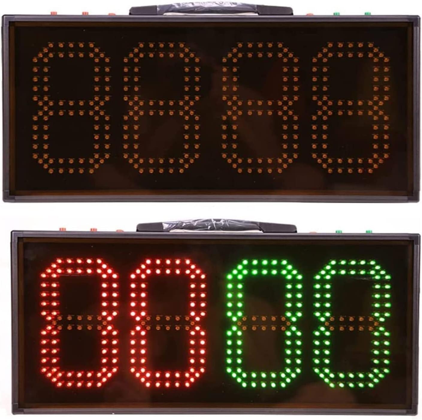 Product DescriptionIt is suitable for displaying information such as substitution and time-out to spectators, athletes and referees in football matches, which brings a different sports experience and sports feeling to spectators and tournament participants.Product Features1. Contains two modes of substitution and extra time. Moderate size, flexible to use, easy to store, in line with the specifications of football matches.2. high brightness, good visibility, low power consumption, long service life, after switching off the saved data can still be displayed.3. red and green LED visible distance of about 120 metres (outdoor), manual operation, convenient and direct.Product ParameterProduct Name LED Stadium Replacement SignFunction: number display/injury time/scoreControl mode: manual buttonDisplay mode: double-sided 4-digit dual-colour displayWorking time: 3 hours continuous displayBrightness: Outdoor high brightnessOperating environment: -10℃ to 50℃, available on rainy daysDisplay colour: red + greenFrame material: aluminium alloySize: 555X263X50mmPacking List1* LED replacement boardIf you have any questions, please feel free to contact our customer service at any time.