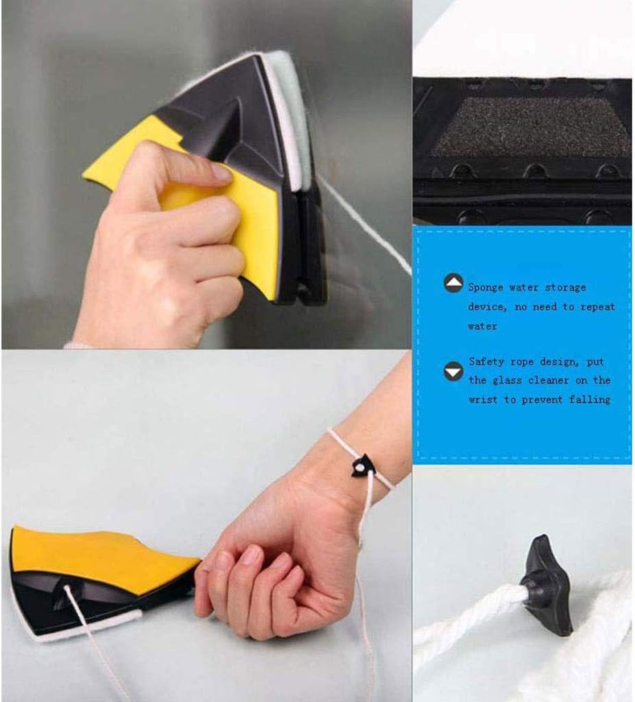 [Humanized Design] Our glass cleaner has a triangular design with a new and improved pointed design that can be cleaned to all corners of the glass.[Strong Magnetic Force] sided design, strong magnetic, not too fast, faster cleaning, more efficient, widening magnetic magnetic steel device, to solve the trouble of cleaning the glass outside the high-rise. Can quickly clean the glass surface, get twice the result with just half the effort. [Super Quality] Made of plastic materials, and , practical, sturdy, drop-resistant, , wear-resistant, corrosion-resistant, and long-lasting.Multi-purpose Glass Scraper: The glass scraper is ideal for cleaning the glass palette, oven, cooktop, ceramic top, and glass stove. Also is a sticker remover, which can help you remove stickers, decals, glued characters, labels, paint, paper, and carpet glue off the window