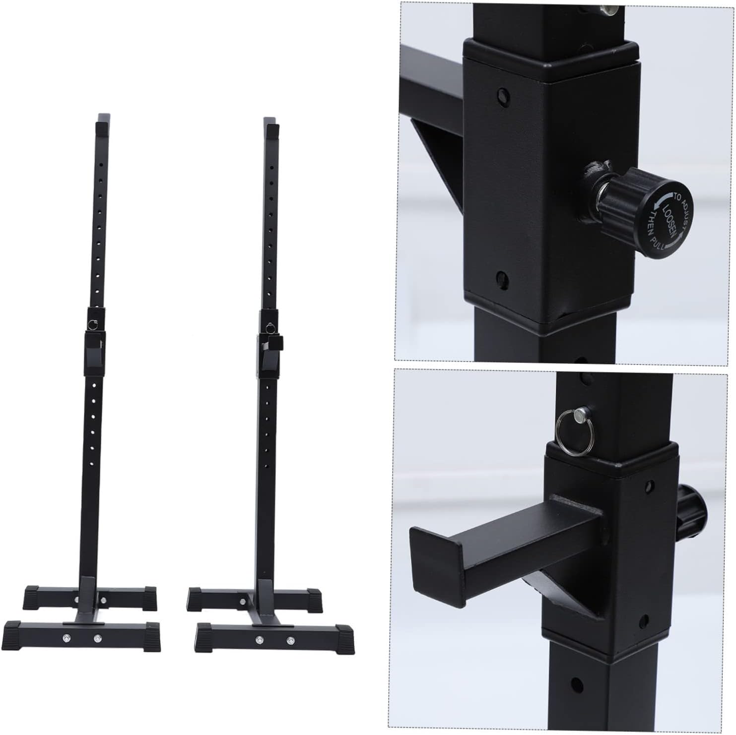 Package Include 1 x pair of squat racks Features -Color: black lying push rack -Size: 140.00X47.00X40.00cm/55.02X18.47X15.72in sports supply -Material: steel tube fitness supply - Made of steel tube materials, , sturdy and barbell holding stand. - The material is superior, not easy to fade or break, and can be used for a long time barbell support. - The storage rack is simple , but very to use deep squat assistant. - A storage rack for storage of your fitness equipment, such as barbells bench press frame. - The rack are to place your barbells stably, which will not scratch your favorite equipment workout equipment.Goods Informationbarbell holding stand Are you looking for a , yet rack for your barbell? Are you in search of a sturdy, trustworthy barbell rack that has multiple functions? , ! Our steel tube barbell rack must meet your needs.bench press frame It is one of for you