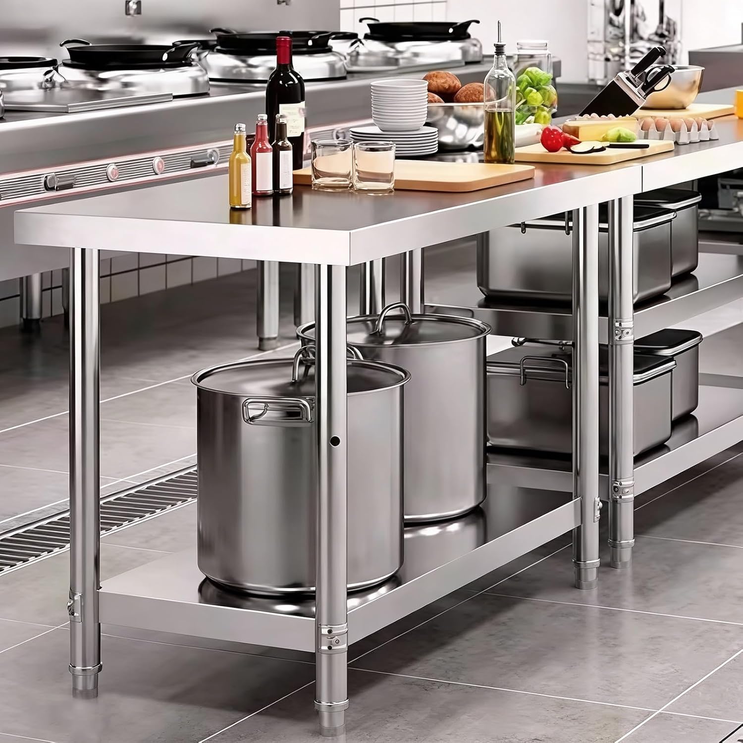 Thickened stainless steel multi-tier workbenchStreamlined use and storage without occupying floor space. Simple installationMulti-tier design for vertical space utilization1. Triangular support structure ensures sturdiness and even load distribution2. All-steel connecting screws for easy disassembly and practicality3. Multiple reinforced crossbeams enhance compression resistance4. Steel external connectors extend service life and avoid looseningProduct Name: Multifunctional WorkbenchMaterial: Stainless SteelColor: Stainless Steel FinishDimensions:L60xW40xH80cm/23.6x15.7x31.5” , L80xW40xH80cm/31.5x15.7x31.5” , L100xW40xH80cm/39.4x15.7x31.5” , L120xW40xH80cm/47.2x15.7x31.5” , L70xW50xH80cm/27.6x19.7x31.5” , L80xW50xH80cm/31.5x19.7x31.5” , L90xW50xH80cm/35.4x19.7x31.5” , L100xW50xH80cm/39.4x19.7x31.5” , L120xW50xH80cm/47.2x19.7x31.5” , L60xW60xH80cm/23.6x23.6x31.5” , L70xW60xH80cm/27.6x23.6x31.5” , L80xW60xH80cm/31.5x23.6x31.5” , L90xW60xH80cm/35.4x23.6x31.5” , L100xW60xH80cm/39.4x23.6x31.5” , L120xW60xH80cm/47.2x23.6x31.5” , L80xW80xH80cm/31.5x31.5x31.5” , L100xW80xH80cm/39.4x31.5x31.5” , L120xW80xH80cm/47.2x31.5x31.5”Finish: Brushed and polishedApplications: Kitchens, assembly lines, hotelsProduct Listing: Workbench x1Important Notes:Minor weld marks may appear on stainless steel products due to manufacturing processes.This product uses stainless steel material; countertop may have slight scratches.All dimensions are manually measured and may vary slightly.Images may show slight color differences due to shooting angles, monitors, and resolutions.