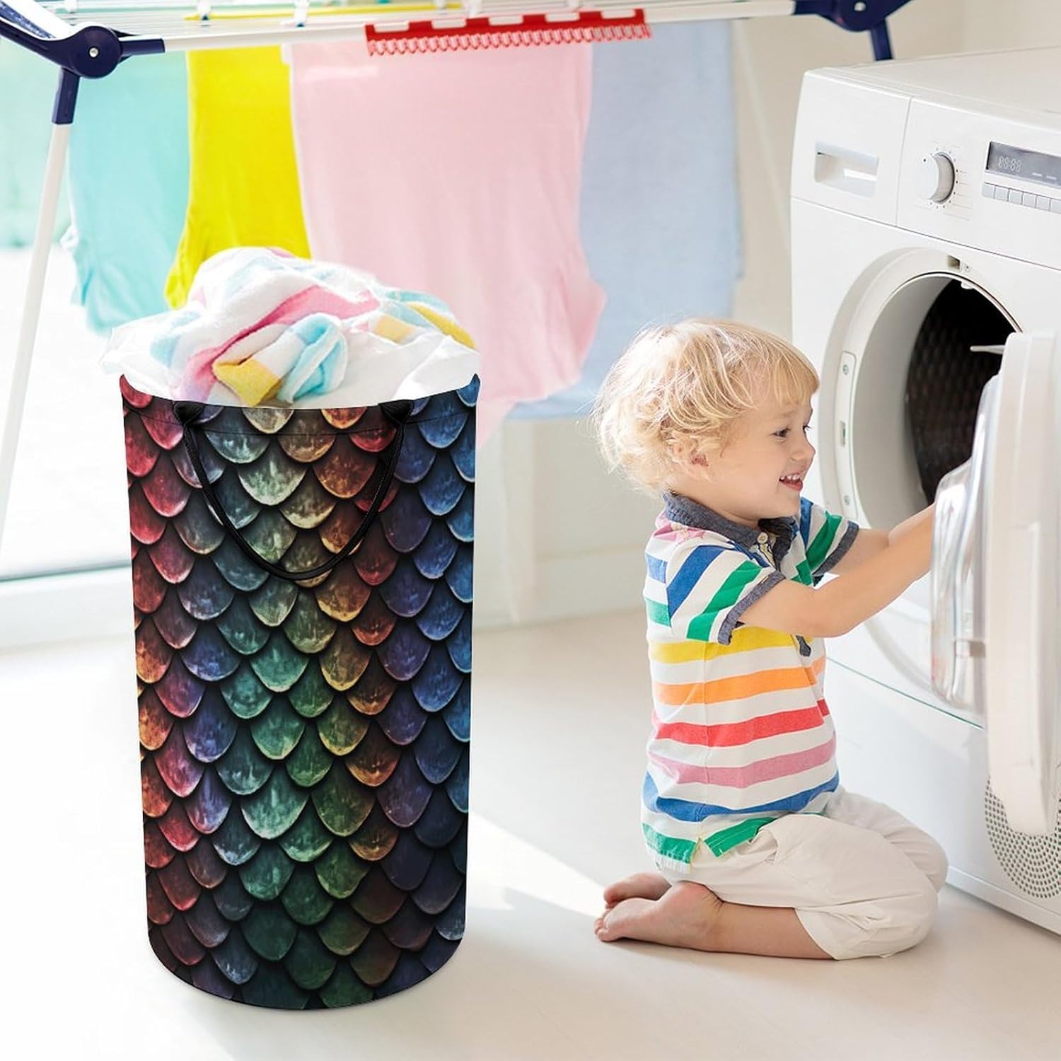 Dragon Scale Laundry Hamper with Handles Waterproof Collapsible Laundry Basket Large Lightweight Round Dirty Clothes Hamper for Home Dorm Bathroom Decor