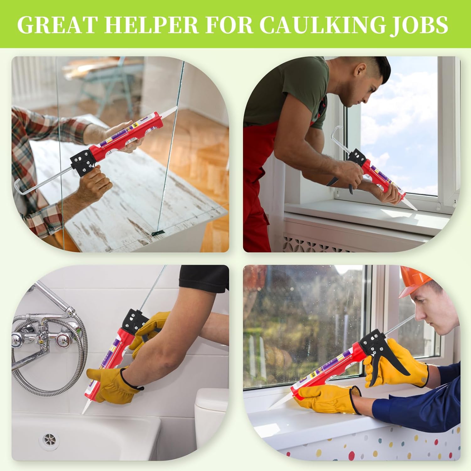 • Sealant Finishing Tools: Comes with 4 sealant finishing tools, whose different edges are marked with different sizes, depending on what size and shape of bead you want on the caulking job. Much more professional and time-saving than using your finger or tape.