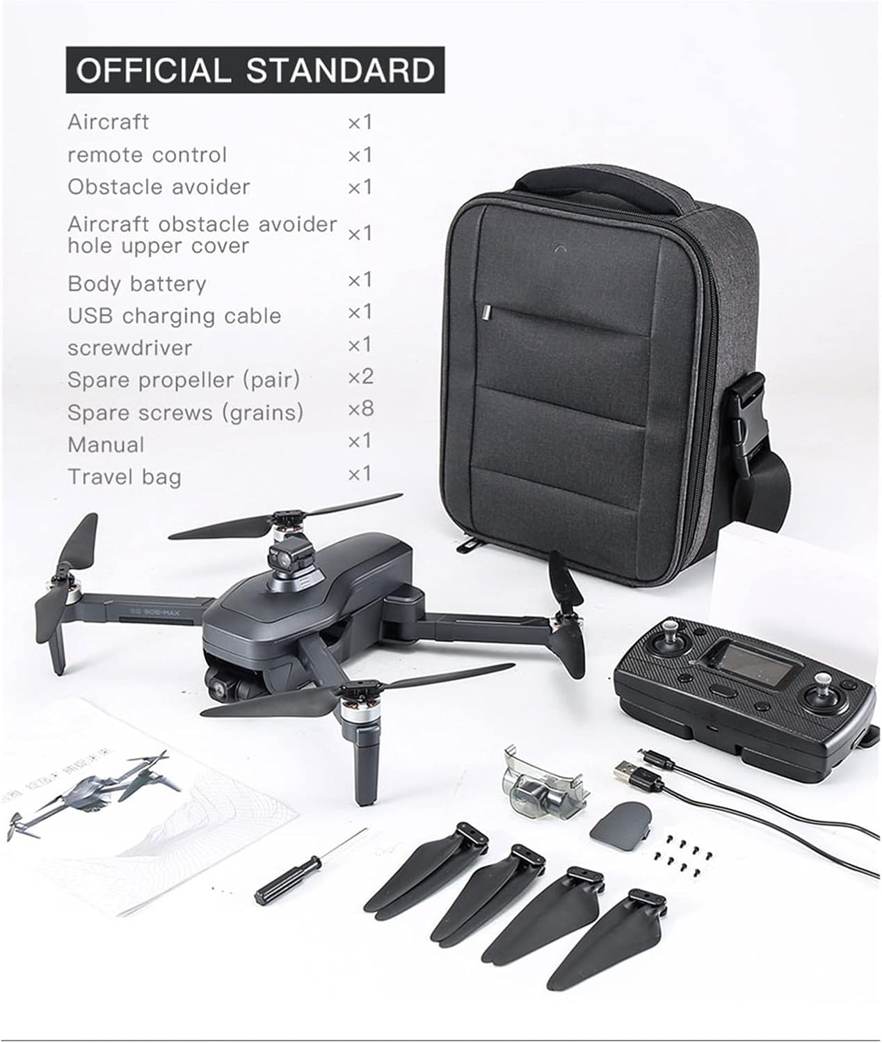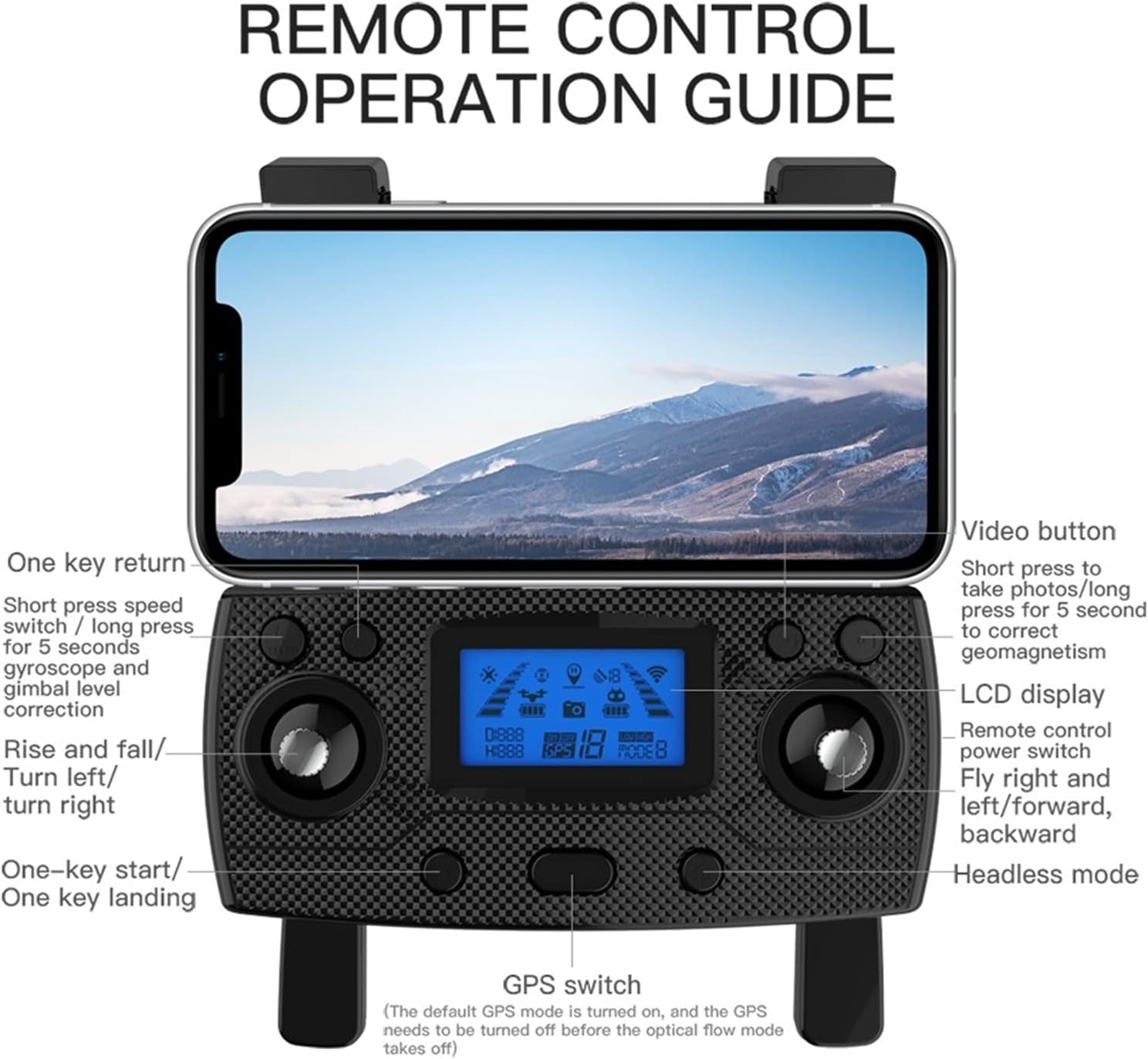 ALTITUDE HOLD MODE FOR EASY CONTROL: Equipped with an advanced barometer, and 7.4v motor, this drone can perform altitude hold for more stable flight. Beginners can easily get to grips with it and be taking stunning pictures and video from the sky in no time! APP CONTROL: Operate your drone through the app after connecting it with your phone via Wi-Fi, offering you real-time image transmission so that you can easily shoot fun videos and pics to share with your friends and family. FOLDABLE DESIGN: Foldable and flexible blades make this drone small and portable. It is easy to take with you so that you can create your own little air show anywhere you like. NEW TO DRONES? NO PROBLEM: The headless mode function, one-key take-off/landing and altitude hold function truly allow for easier operation, which makes flying this drone a breeze for any level of player. 6. Aircraft retrieval function: Click the GPS signal icon 3 times to open the map interface, the map displays the last distance, latitude and longitude of the aircraft. 360 Degree Obstacle Avoidance Function The obstacle avoidance device detects whether there are obstacles ahead through the 120° fan-shaped scanning in front of the , and the remote control will sound an alarm if the obstacle is detected within 20 meters, and the drone cannot move forward. Brushless Motor: 1806 Three-Axial Stabilized Mechanical Pan-Tilt Support TF Card: Up to 32GB Smartphone WIFI Receiving method: 5G WIFI Remote Receiving Method: 2.4Ghz Flight Endurance: 23-27 min Charging Time: 360 min Remote Control Distance: 1200m Drone Battery: 7.6V 3400mAh Remote Control Battery: 3.7V 500mAh Fuselage Dimension:28.3x25.3x7cm(opened)17.4x8.4x7cm(folded) Rotation Angle of Camera:110° Angle of Aerial Photography:120° Distance of Image Transmission: 600-800M Flying Height: About 0-120M Distance of GPS: 30M Distance of Image Follow: 3-10M Recognizable Distan