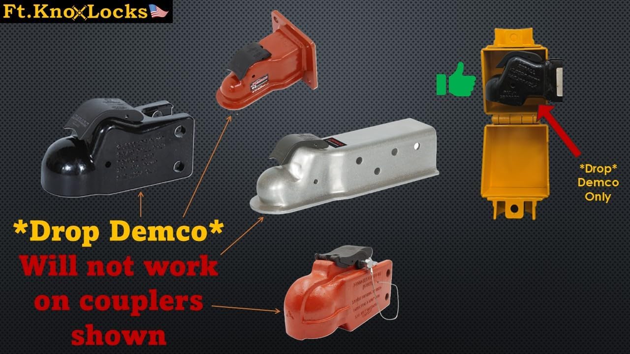 The Ft. Knox Locks *Drop Demco* lock is specifically designed for Demcos 2" and 2-5/16" drop couplers in their various styles as shown. We've ensured that the smaller aperture is a precise and secure fit.