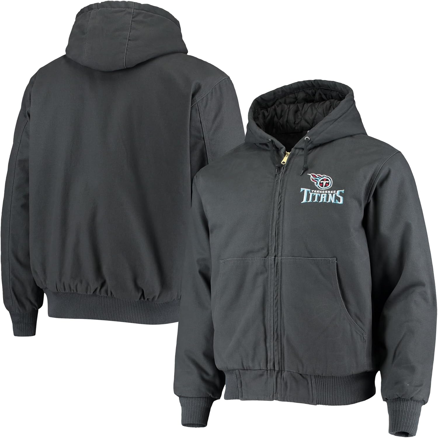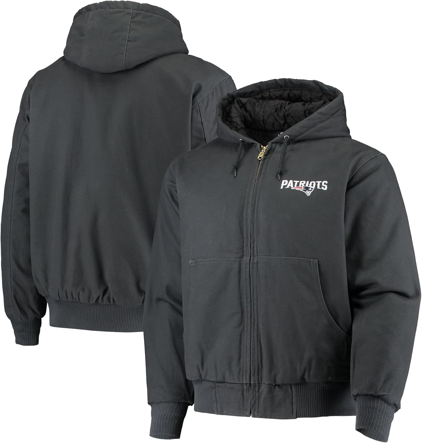 Heavy Duty Cotton Canvas jacket with Dallas Cowboys embroidered logo. Warm quilted lining and fully lined hood for warmth. Ribbed knit cuffs and hem with YKK brass zipper for durability