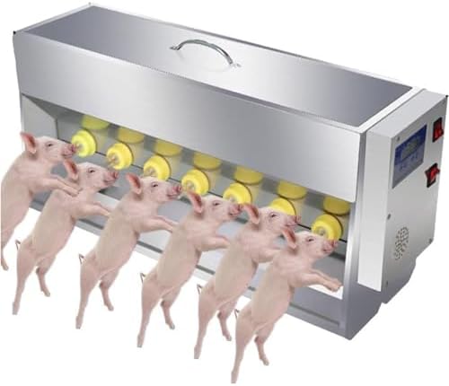 Introducing the innovative Piglet Feeder, an essential solution for efficient feeding of piglets and other small livestock, including cattle and sheep. This advanced feeder features a user-friendly double-sided design, equipped with 5/7 teats on each side, allowing up to 10/14 piglets to feed simultaneously. Perfect for busy farms, it streamlines the feeding process, ensuring that your young animals receive the nutrients they need for healthy growth.The Piglet Feeder is engineered with an automatic stirring system that prevents nutrient settling, guaranteeing that all liquid nutrients are effectively absorbed. Safety is a key consideration; the feeder includes an automatic power cutoff feature that activates when the milk supply is low or when the water level falls below a safe threshold. This ensures the well-being of your animals at all times.To further enhance the feeding experience, the Piglet Feeder incorporates sound source simulation that mimics a mother sow's calls, attracting piglets to feed naturally. The intuitive control panel allows for precise temperature regulation, with a range from 0 to 100°C, ensuring optimal feeding conditions.Constructed from durable stainless steel, this feeder is built to withstand the rigors of farm life. Whether you are a small-scale farmer or managing a larger operation, the Piglet Feeder is an invaluable addition to your livestock care routine.Specifications:- Material: Stainless Steel- Temperature Control Range: 0-100°C- Temperature Measurement Accuracy: 0.2% FS- Voltage: 220V- Power: 200WPackage Includes:- Piglet Feeder x 1