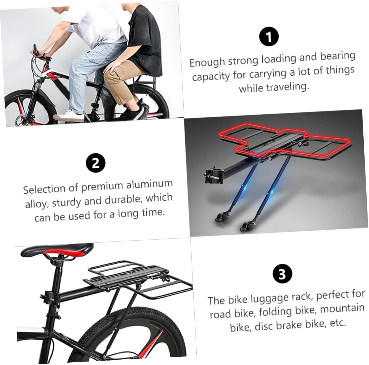 Package List 1 x Bike Rear Rack Features -Size: 47.00X21.00X13.50cm/18.47X8.25X5.31in Cargo Luggage Rack -Color: Black Cargo Holder -Material: Aluminum Alloy Bike Luggage Rack -Place things firmly and not easy to fall off. Not easy to be damaged Cargo Holder. -A sturdy and bike rear rack for professional and personal use Rear Rack. -Strong bearing capacity, for carrying cargo, luggage, backpacks, heavy objects, travel goods, repair tools, etc Mountain Bike Cargo Holder. -Adoption of aluminum alloy material, and wear resistant Sturdy Cargo Rack. -Fits of the bikes like bike, road bike, disc brake bike, folding bike, bike and other applicable models Mountain Bike Cargo Rack.Goods Information Cargo Holder It can be installed and taken down easily and conveniently.Bike Luggage Rack necessity for outdoor cycling to store small items or just for your bike decoration. Bike Rack This is a bike rack, which is made of material for your use