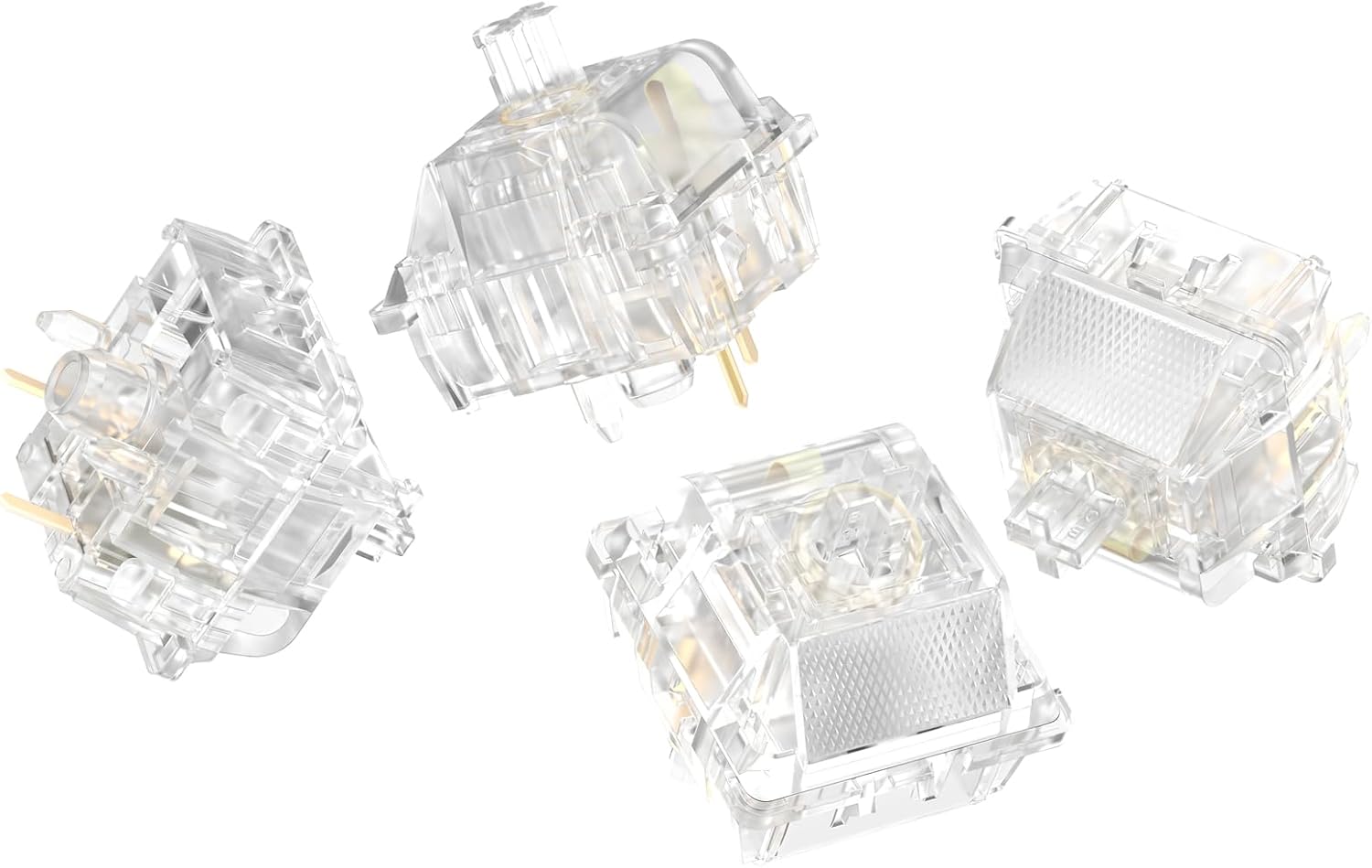 DUROCK 2024 Full Transparent Ice King Switch Tactile T1 RGB Switches Key benefits: Premium Materials Combination for Smoother push feel High-precision Molds for Minimum Wobble Optimized Sound performance with Special longer Pole Full Transparent Clear Housing and Stem Removable Light Column for light through and wide compatibility 2 Thick Metal Pins compatible with Hotswap PCBs 68g Long Progressive Spring (Bottom Out force) The latest advanced Lube Method Gold Contacts for Over 60 million keystrokes with no loss of quality Technical Data: Switch Type: MX Mechanical Tactile Switch (T1 Tactility) Top Housing: Polymer Nylon (Transparent) Bottom Housing: Polymer Nylon (Transparent) Stem: Modified Polyamide (Transparent and longer pole) Spring: Gold Plated Progressive Spring Lighting: SMD, THT, Through Hole Includes: One order = 90x Ice King Tactile T1 Switches