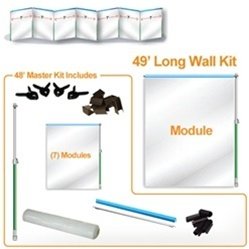 The 49' Curtain-Wall Dust Containment Long Wall Kit includes everything needed to build a Curtain-Wall up to 49' wide. Kit Includes: (7) 7' Modules (1) Curtain-Wall Starter Pole (8) Ring Tops (8) Door Clamps (32) Sleeve Clips