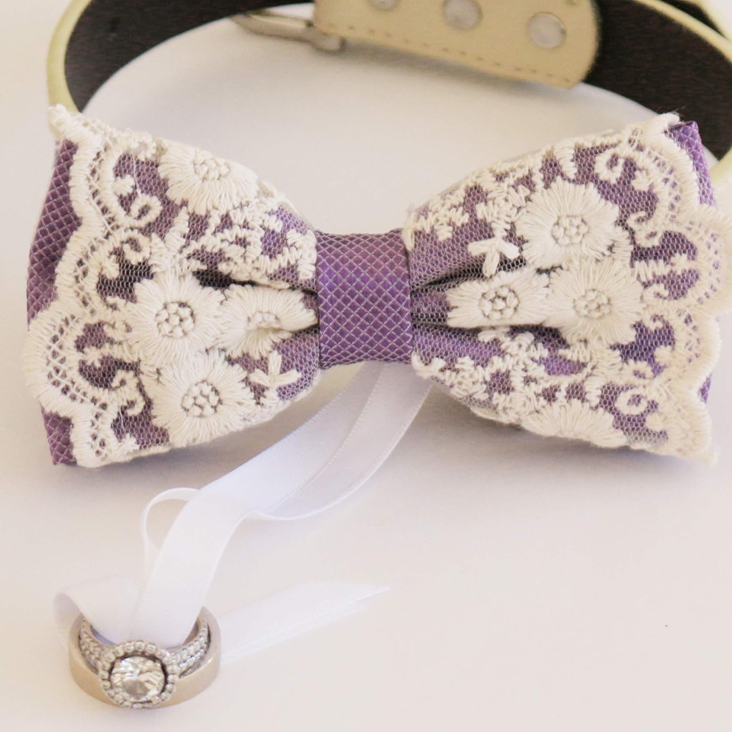 | Color | Collar of Color: Black, Brown, Copper, Green, Gray, Ivory, Light Blue, Navy, Red, Royal Blue, Soft Pink, Purple or White - Ring Bearer Bow Color: Dusty lavender |
