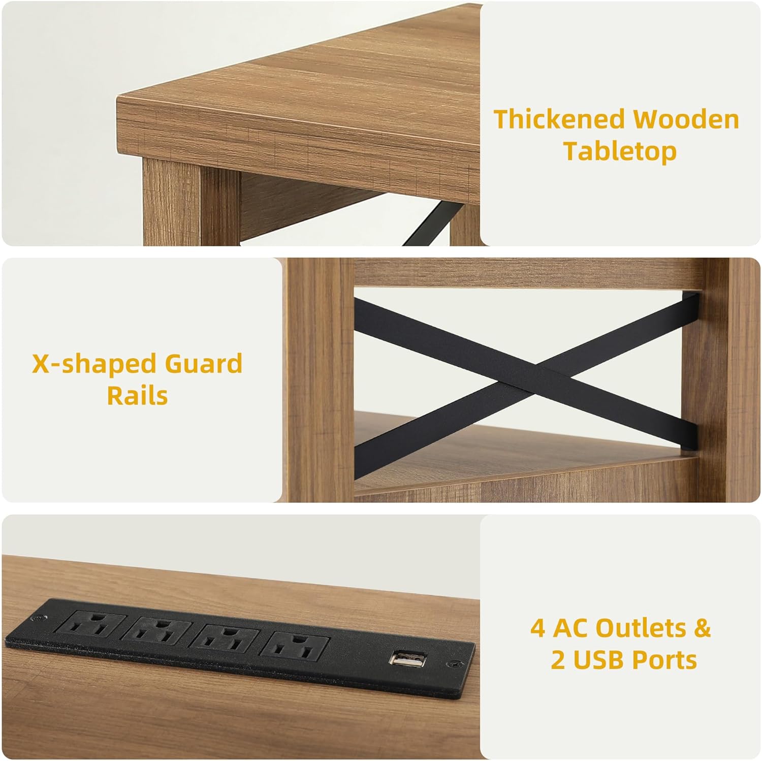 | Included Components | 2-door Cabinets, Charging Station with AC Outlets and USB Ports, LED Light, Soundbar Shelf, TV Stand |