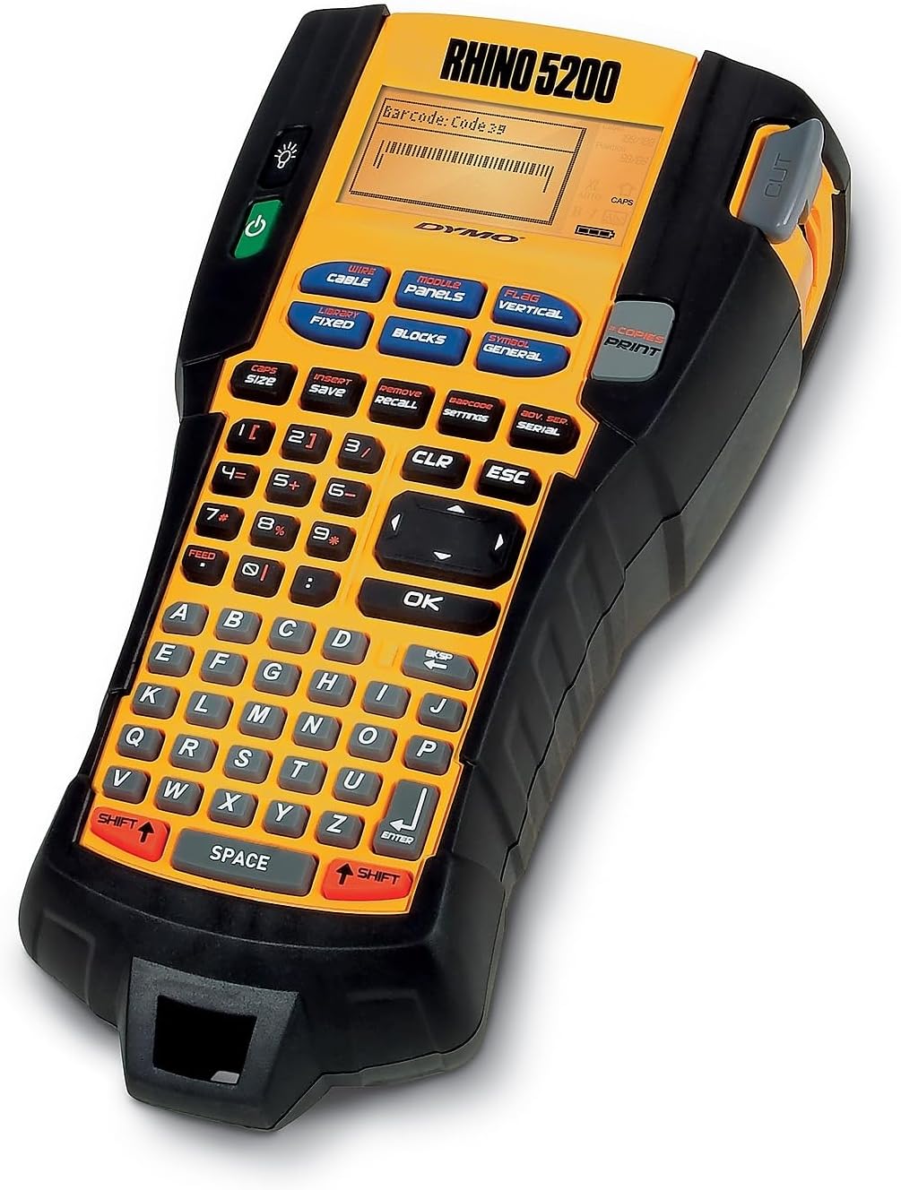 Designed for professional installers in real-world jobsite conditions. Quickly creates crystal-clear, professionally formatted labels. Exclusive "hot keys" automatically size, space and format labels for wires and cables, terminal blocks, 110 blocks, electrical and patch panels, vertical and fixed-length applications. Pre-programmed symbol library puts industry symbols, punctuation, currency and fractions at your fingertips. Prints Code 39 and Code 128 bar codes on 3/4" labels. Large two-line display is backlit. Slip-resistant grip and rubber bumper protect against damage. Lanyard loop provides the option of hands-free portability. Uses industrial strength labels that resist extreme heat, UV rays, moisture, chemicals and solvents. Automatic shut-off maximizes battery life. Uses six AA batteries or quick-charging lithium battery (all sold separately). Power Source(s): Lithium-Ion Battery (Sold Separately); Tape Size: 3/8"; 1/4"; 1/2"; 3/4"; Number of Printed Lines: 5; Display Characters x Display Lines: 13 x 2.