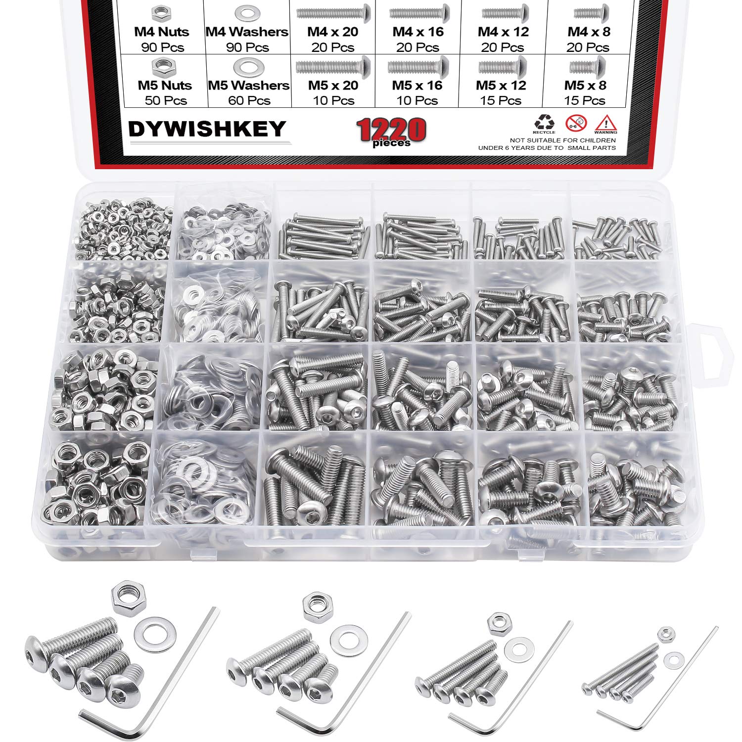 【Specifications:】 - Color: Black - Quantity: 1220 PCS - Sizes: M2 M3 M4 M5 - Material: 10.9 Grade Alloy Steel - Screw Type: Hex Button Head Cap Head screw 【Features:】 1, 10.9 grade alloy steel with superior rust resistant ensure long lasting results,corrosion resistance, anti-aging, good toughness 2, This kit can be widely used in all kinds of precision machinery, classified instruments, instruments, electronic products, household appliances, communication products, locks, lamps, lights, toys, etc. 【Package Included:】 【M2】 M2 * 8------------------------30 PCS M2 * 12----------------------30 PCS M2 * 16----------------------30 PCS M2 * 20----------------------30 PCS M2 Nuts---------------------140 PCS M2 Washers----------------140 PCS 【M3】 M3 * 8------------------------30 PCS M3 * 12----------------------30 PCS M3 * 16----------------------30 PCS M3 * 20----------------------30 PCS M3 Nuts---------------------140 PCS M3 Washers----------------140 PCS 【M4】 M4 * 8------------------------20 PCS M4 * 12----------------------20 PCS M4 * 16----------------------20 PCS M4 * 20----------------------20 PCS M4 Nuts---------------------90 PCS M4 Washers----------------90 PCS 【M5】 M5 * 8------------------------15 PCS M5 * 12----------------------15 PCS M5 * 16----------------------10 PCS M5 * 20----------------------10 PCS M5 Nuts---------------------50 PCS M5 Washers----------------60 PCS 【Total: 1220 pcs, M2 M3 M4 M5 Alloy Steel Hex Button Head Cap Bolts Screws Nuts Washers】 【Note: Small parts, keep away from children under 6 years old.】