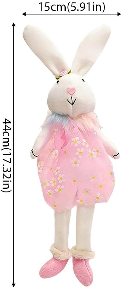 Product SpecificationsProduct Name: Easter Plush BunnyMaterial: PlushColors: Blue, Pink, YellowSize: 44*15cm/17.32 inches*5.91 inchesProduct Description1. Premium Material and Ideal Size: This adorable Easter bunny is made of soft plush material and measures approximately 44 cm/17.32 inches tall and 15 cm/5.91 inches wide when seated. Its carefully selected size makes it perfect for a variety of decorative items.2. Vibrant Spring Colors: These plush bunnies wear charming dresses in blue, pink, and yellow, perfectly embodying the freshness and joy of spring. Their bright colors are designed to add a touch of brightness and warmth to your holiday decorations.3. Charming and Unique Design: Each bunny boasts an irresistibly cute sitting pose with legs elegantly dangling, wearing a beautiful floral dress with a fluffy, adorable collar. A delicate little flower adorns its head, adding to its charm and making it an eye-catching decoration. 4. Versatile Holiday Decoration: Elevate your Easter and spring home décor with these adorable bunnies! They're perfect for displaying on shelves, windowsills, fireplace mantels, or as table decorations, creating a warm and inviting atmosphere for all your celebrations.5. Heartwarming Gift Choice: This plush Easter bunny is a wonderfully thoughtful gift for children, friends, and family. It's perfect for inclusion in an Easter basket, as a birthday present, or as a charming addition to anyone's holiday decoration collection.Packaging List: 1 * Easter Plush Bunny