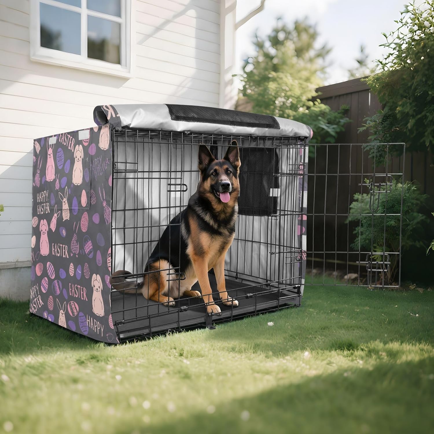 Premium Protection – Constructed from 600D silver-coated oxford fabric, this indoor pet crate cover offers excellent protection from rain, wind, and sunlight. It helps prevent scratching and keeps your pet’s crate protected from external elements.Quick Setup – This cage cover is designed for easy installation, with a simple fastening system that ensures a secure fit without the need for tools or extra help.Mesh Windows for Comfort – This indoor dog crate cover includes mesh windows on all sides, promoting airflow to keep your dog cool and comfortable while providing privacy and a sense of security inside the crate.Secure and Stable – With four tie-down straps at the bottom, this travel dog crate cover remains securely in place, even during windy conditions. This feature ensures that your dog’s crate is stable and protected from the elements.Flexible Usage – This dog kennel cover is suitable for both indoor and outdoor use, making it a Suitable solution for protecting your pet's crate whether at home, during travel, or on outdoor adventures.