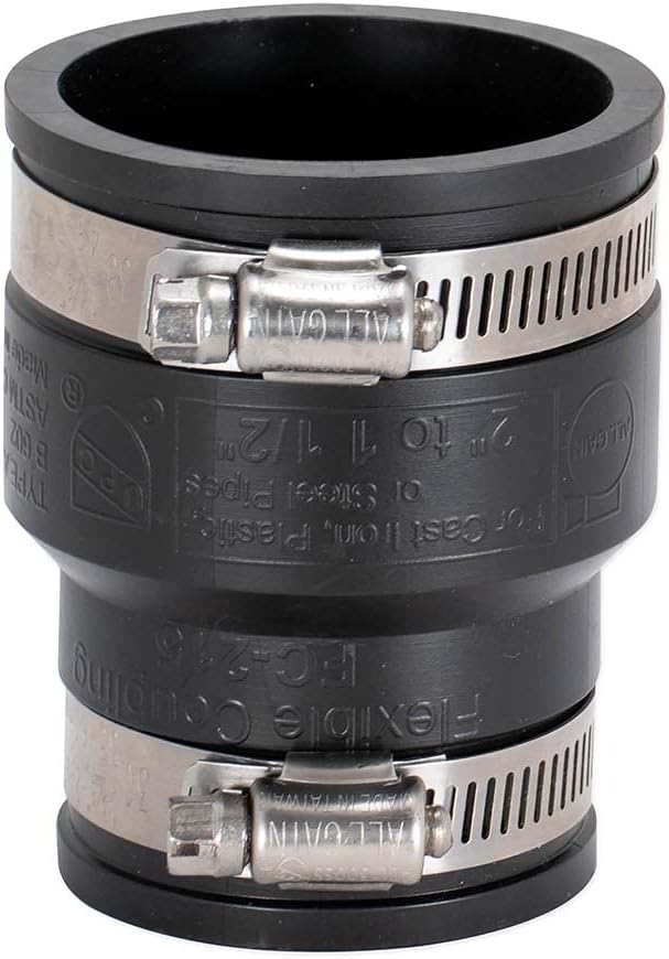 Product Description Simplify your plumbing and home improvement projects with the Eastman flexible coupling. Made of high-quality rubber with sturdy stainless steel clamps, this coupling provides great sealing efficiency with piping connections. The flexible coupling can be used on 2 x 1-1/2 inch cast iron, plastic, copper, or steel pipes and is designed for use on all types of in-house and sewer connections. This stainless steel coupling complies with ASTM C-1173 which makes it suitable for underground drainage and sewer piping systems. From the Manufacturer This Eastman 2" x 1-1/2" Flexible Coupling features stainless-steel corrosion-resistant and rustproof clamps to provide great sealing efficiency with piping connections. Can be used on cast iron, plastic, copper or steel. Fast and easy installation.