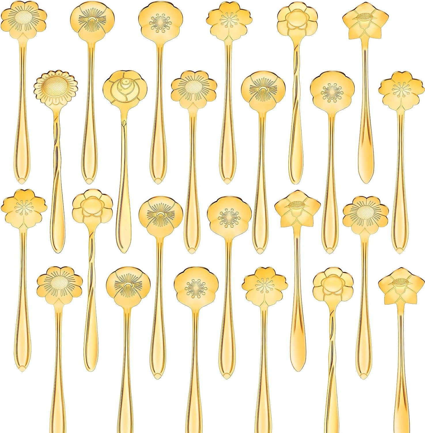 Features: Usage scenarios: With adorable appearance, quality material and functional designs, our flowers spoons are suitable for serving tea, coffee, dessert and more at family gatherings, breakfast feasts, dinner parties, birthdays, weddings celebrations or daily use. Practical gifts: You can share our stirring spoons for your friends and family who will hold a party, or just as birthday gifts and holiday souvenirs, which could express your care and love while strengthening your relationships, helping them enjoy coffee or tea better. Specifications: Material: stainless steel Color: gold Size: approx. 4.92 x 1.1 inches/ 12.5 x 2.8 cm Package includes: 160 x Flower coffee spoons Notes: Manual measurement, please allow slight errors on size. The color may exist a slight difference due to different screen displays. Please confirm carefully whether the size you need before buying.