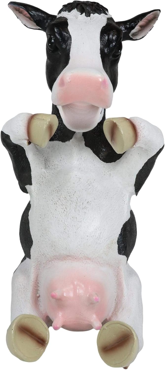 This cute cow wine bottle holder is certain to add a frisky bit of farmyard fun to your next party or family gathering! Beautifully crafted for a stunning presentation, this decorative sculpture was designed to be displayed with country rustic western pride. A wonderful little treasure that's sure to make your favorite wine connoisseur "dairy" happy! This Bovine Brew Cow Wine Holder stands at 7.25" tall, 11.5" long and 5" deep approximately. It weighs about 2.5 pounds.