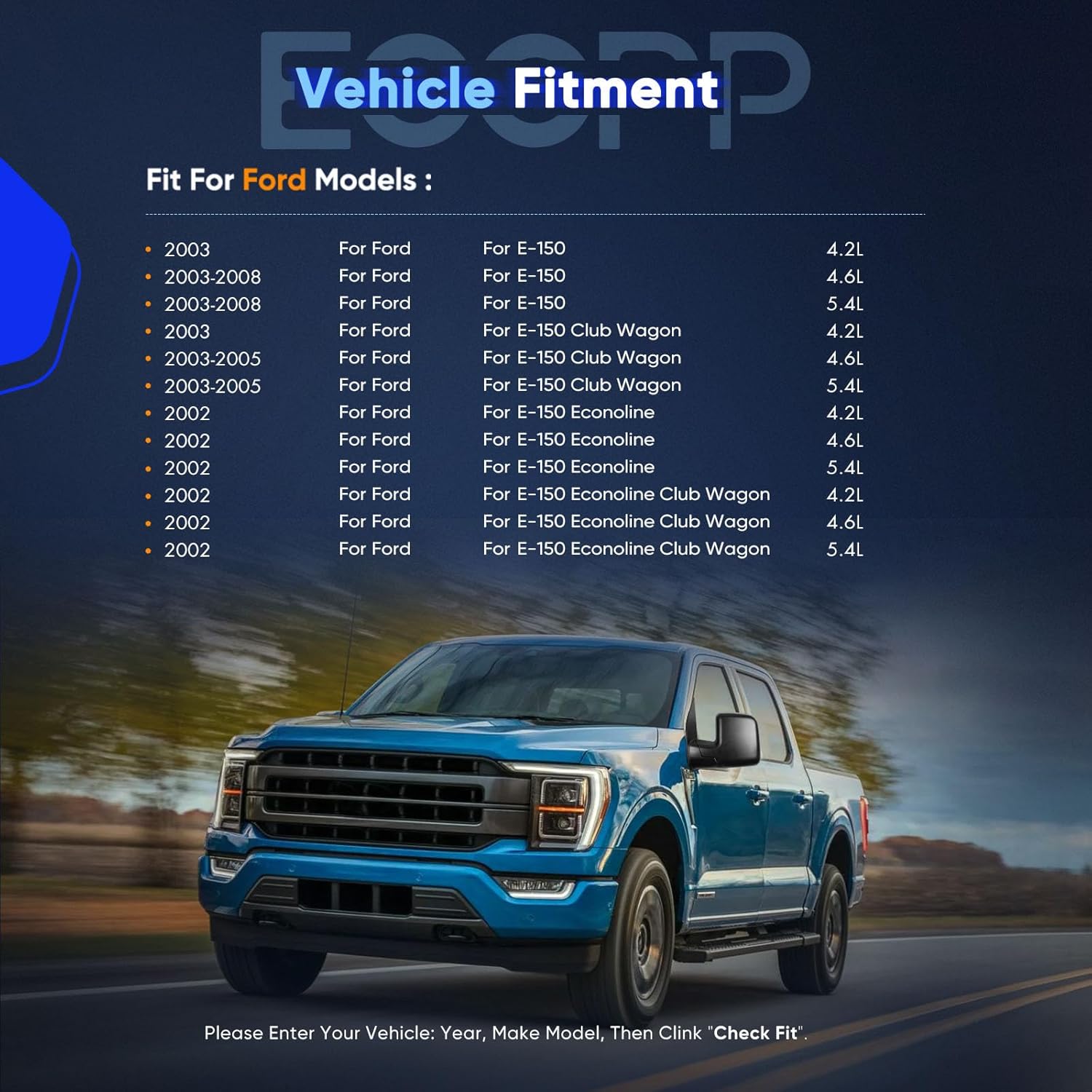 | Compatible with Vehicle Type | 2003-2013 For Ford E-150 E-250 2004-2013 For Ford E-350 E-450 Super Duty E-450 |