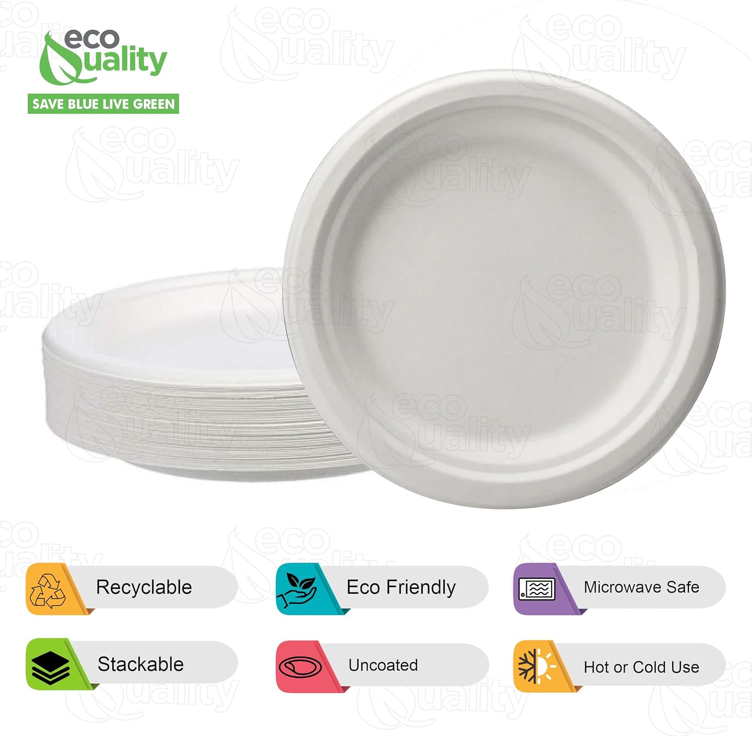 EcoQuality Compostable SugarCane Paper Plates 9 Inch? 100% Tree Free? SugarCane (Bagasse)? 100% Compostable and Biodegradable? Easy to Dispose? Use at your Favorite Parties, Birthdays, Barbecue's? Disposable Paper Plate Alternative? Preserve the Earth? Microwave Safe? Freezer Safe? Soak Resistant? EcoQuality stands behind all of its products 100%. Our disposable dessert plates work great for parties, weddings, mitzvahs, family gatherings and more!Comes to your door in a 200 Count Packaging!Remember to always Recycle!