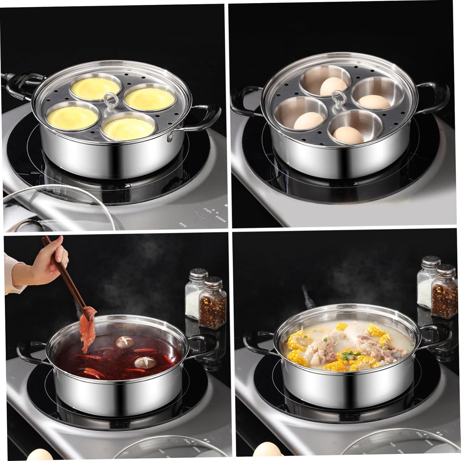 Description: This 4 cup stainless steel egg poacher pan provides an efficient and convenient way to prepare multiple poached eggs at once, saving valuable time during breakfast or brunch. Its non-stick surface allows perfectly cooked eggs to release easily, minimizing mess and simplifying cleanup. Crafted from rust-resistant stainless steel, this poached egg maker ensures long-term durability while retaining a modern look. The pan is designed for compatibility with induction hobs and other stovetop types, delivering even heat for consistent and reliable cooking results. Whether preparing meals for a family or individual, this egg poaching pan supports a healthy lifestyle by enabling the preparation of protein-rich eggs without added fats or oils. Its practical design and user-friendly features make it an essential kitchen tool for any home cook aiming for convenience, quality, and nutritious meals. Features:. Egg Poacher. -Color: Silver. -Material: Stainless Steel. -Size: Diameter about 20cm/7.9inch. Note:Manual measurement, please allow slight errors on size.The colors may exist slight difference due to different screens. Package Including 1 x Egg Poacher